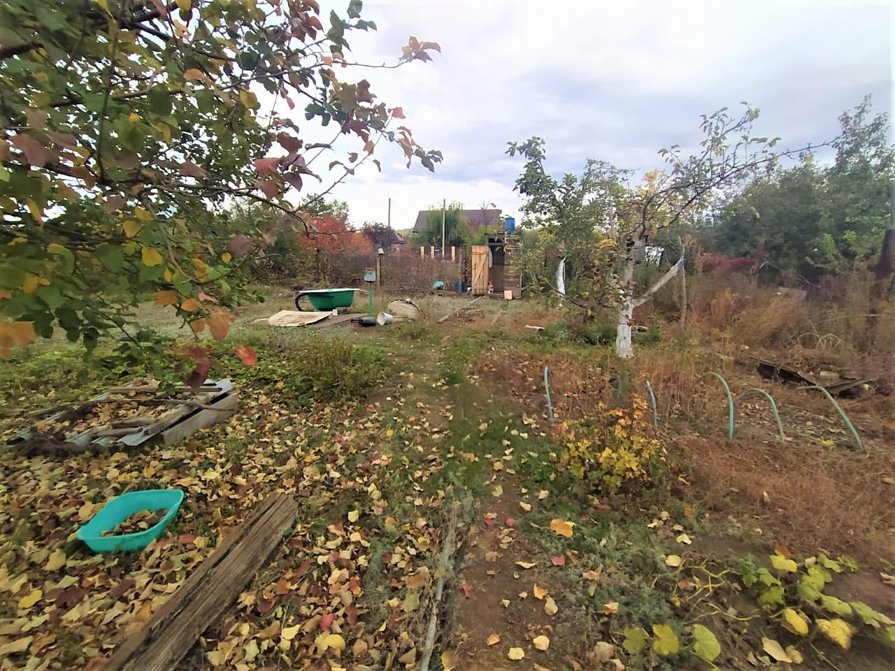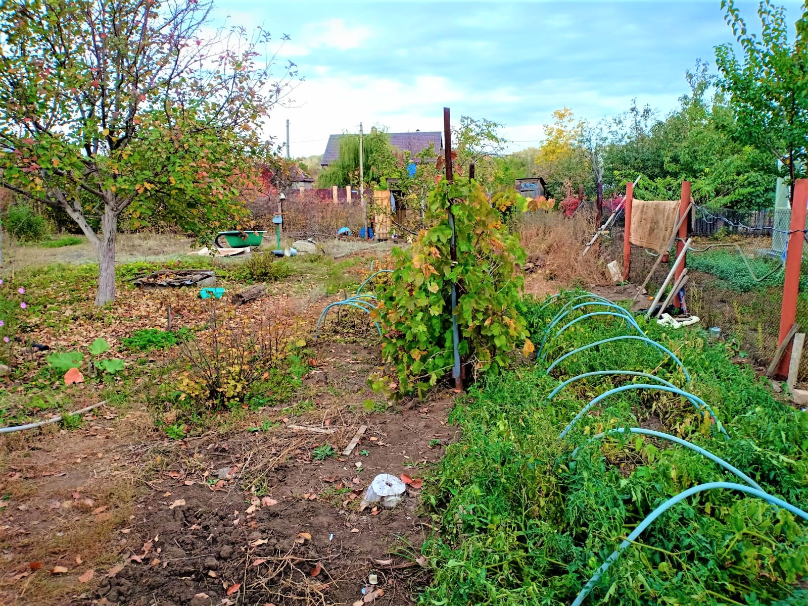 Участок ровный, с насаждениями: яблони, виноград, клубника, смородина, крыжовник.