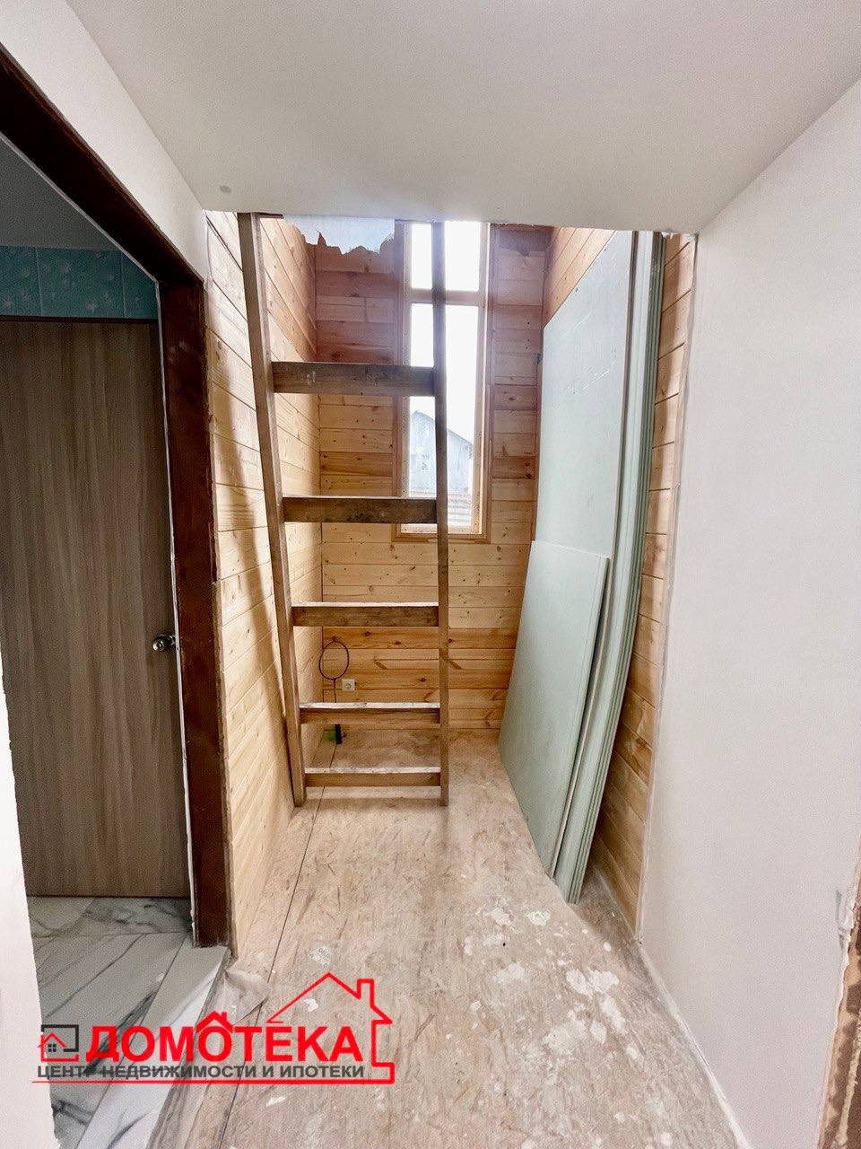 На втором этаже 3 комнаты, место для кладовой и гардеробной. Также есть возможность сделать там второй санузел, вода заведена.