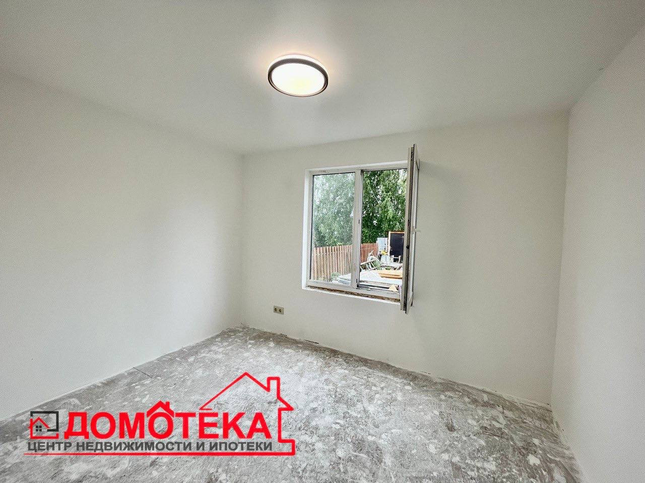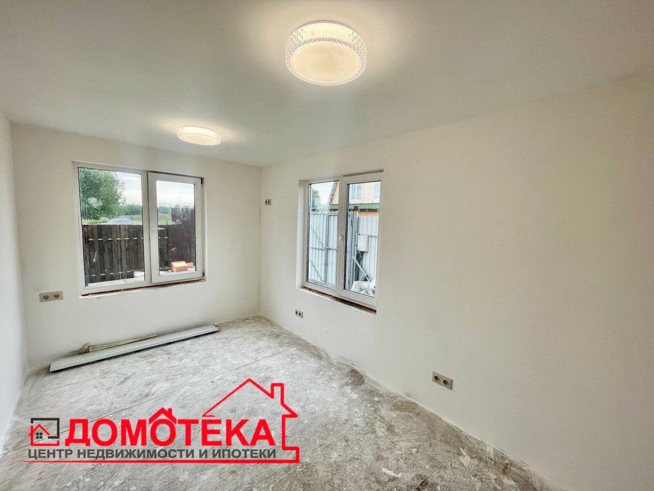 На первом этаже кухня, 2 комнаты (можно объединить в одну), ванная с туалетом раздельно, вода заведена, сантехника установлена.