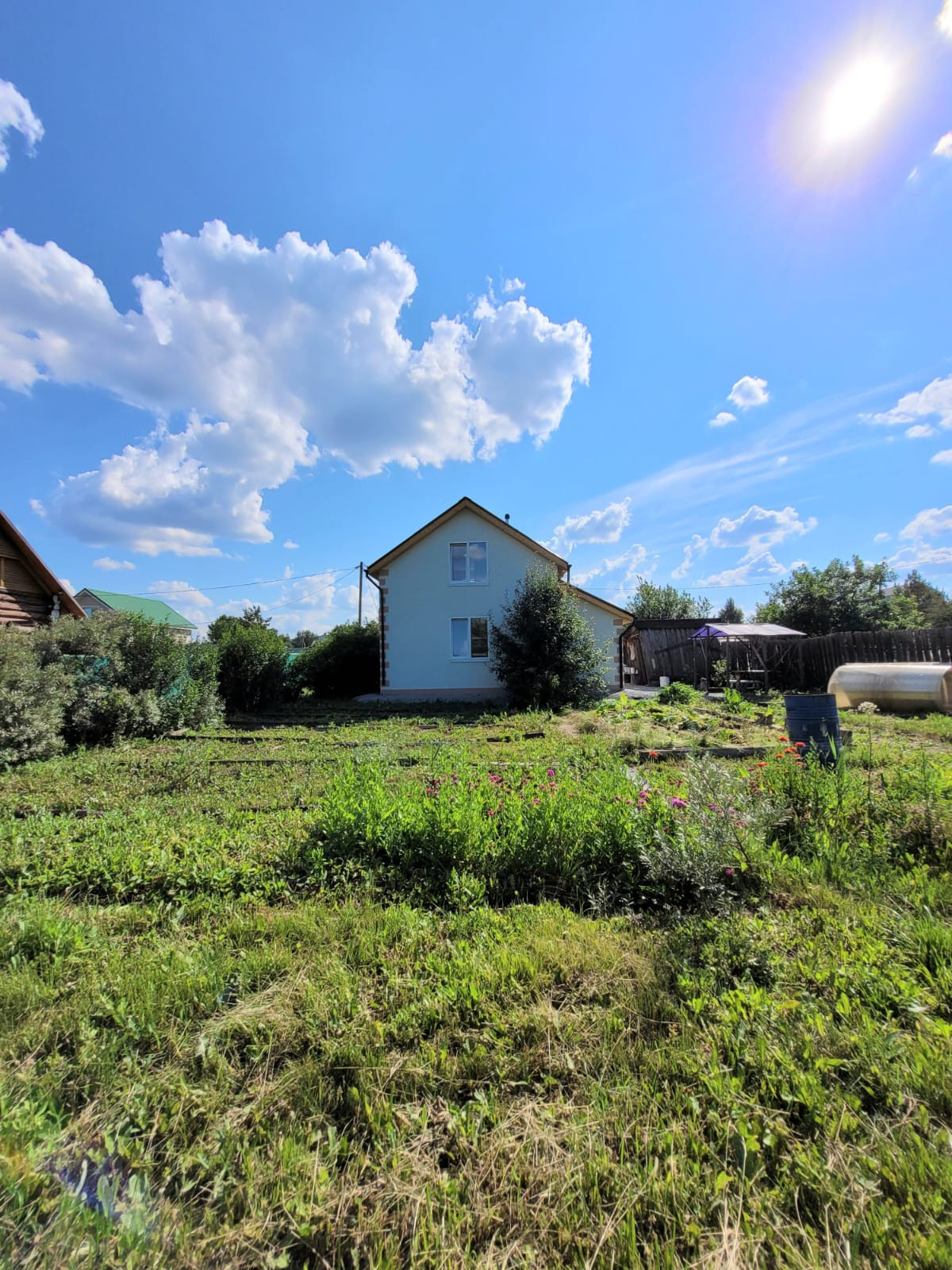 -Участок. На участке кусты смородины, груша, крыжовник, облепиха, барбарис, вишня и др. Участок 6,02 соток. За участком есть территория, можно пользоваться. Перед домом просторная парковка на несколько машин(4 легковые машины точно встанут).