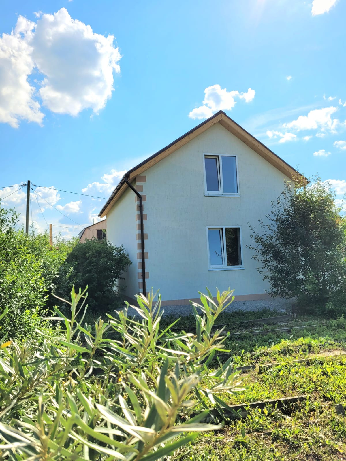 -Дом. Фундамент монолитная плита + сваи каждые 2 метра. Дом зарегистрирован как ЖИЛОЙ можно прописаться. Хорошая альтернатива 3х комн. кв., но с приусадебным участком. В доме очень светло. Дом полностью пригоден для постоянного проживания. На первом этаже: прихожая, сан.узел, просторная кухня-гостинная, спальня, котельная и лестница на второй этаж, где расположены две комнаты. Стены внутри обшиты гипсокартоном, зашпаклеваны и поклеены обои, на втором этаже стены подготовлены под обои. Вода в дом заведена из собственной скважины, для горячей воды установлен водонагреватель. На полу первого этажа керамогранит и водяной теплый пол. Зимой в доме очень тепло.