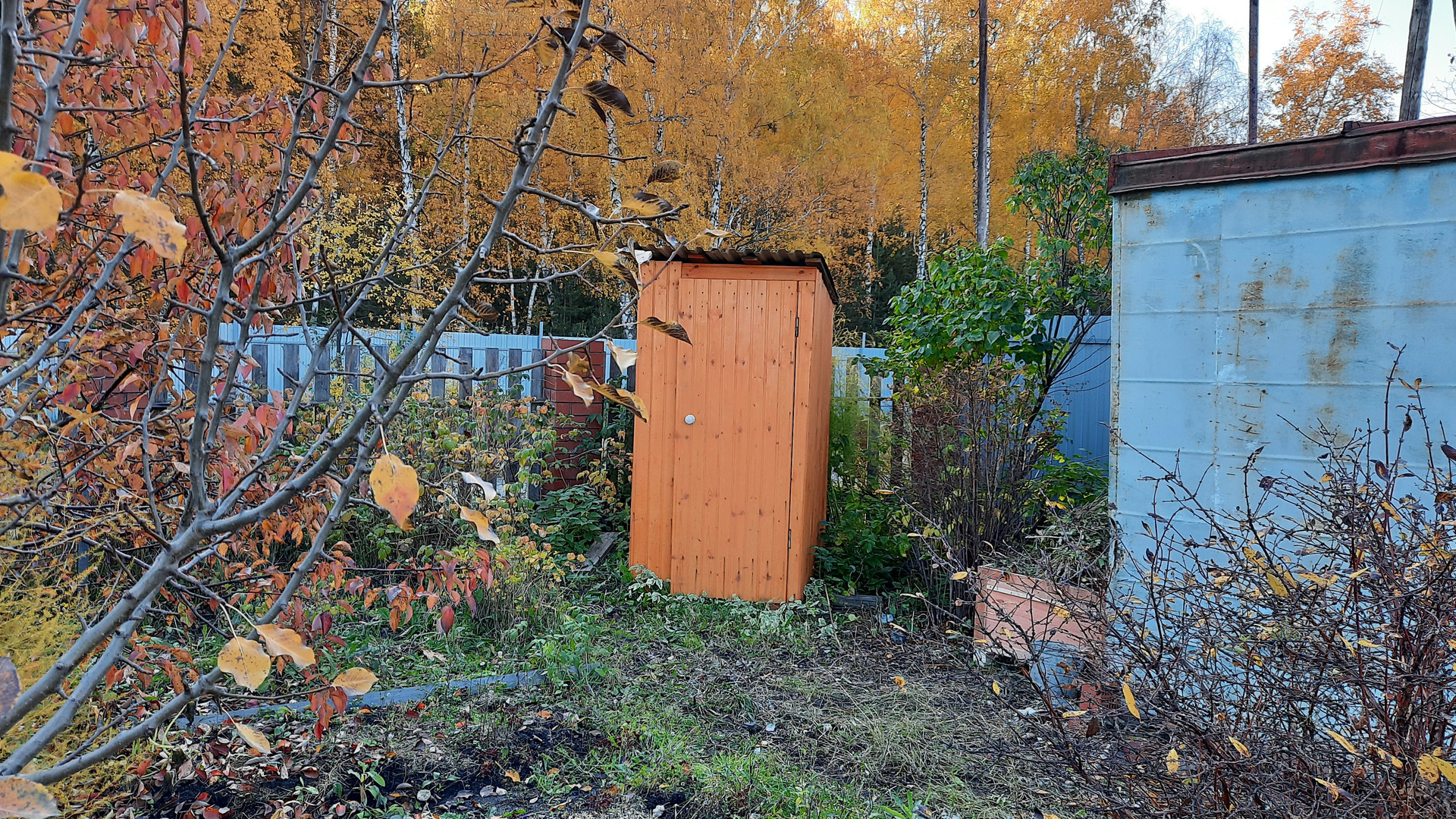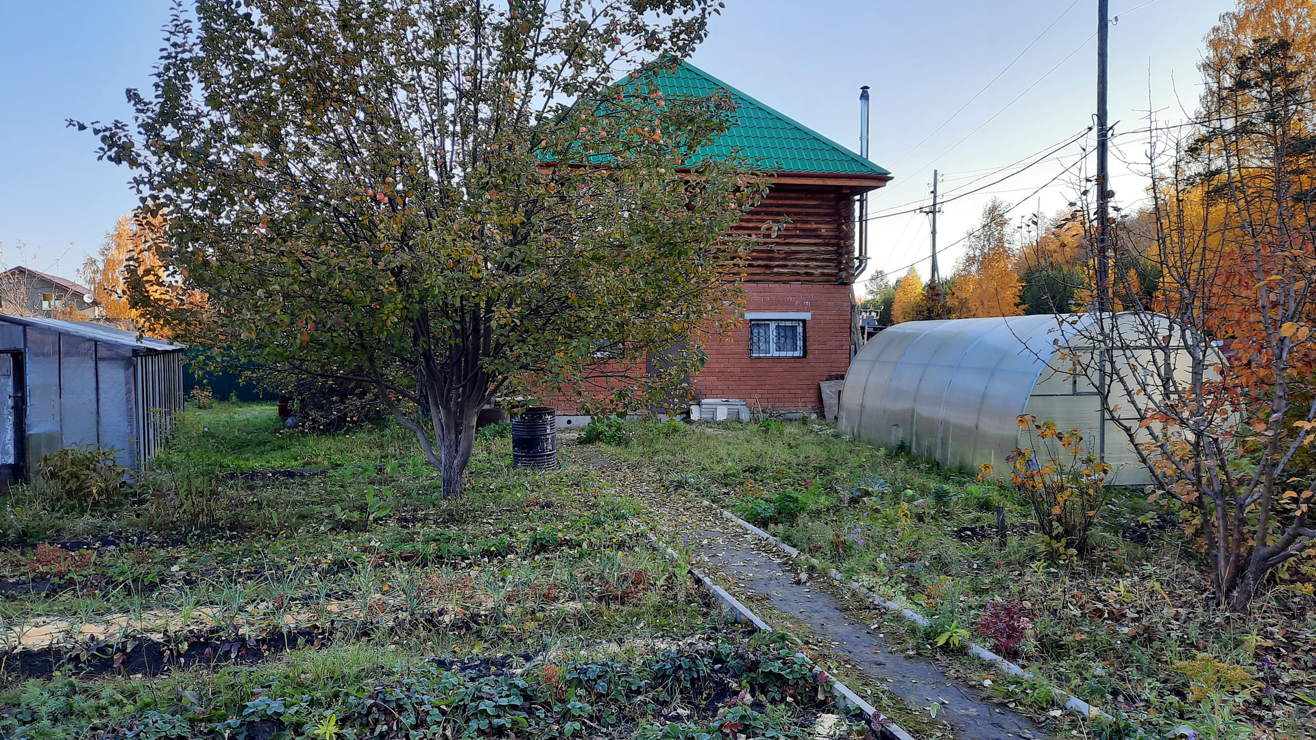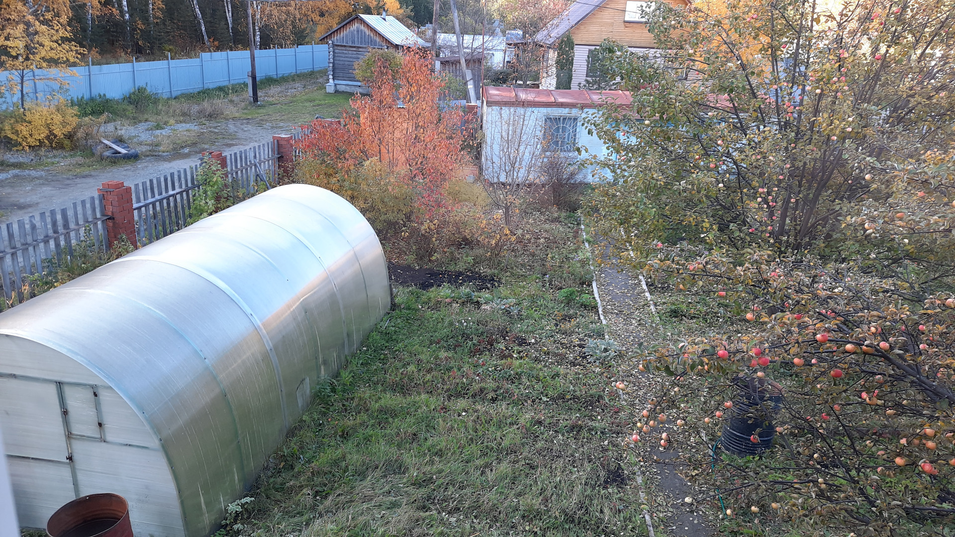 Есть 2 теплицы, плодоносящие яблони и груши, садовые насаждения (вишня, слива, жимолость, смородина, малина). Участок ухоженный. Есть свой выход в лес. Очень живописное место.