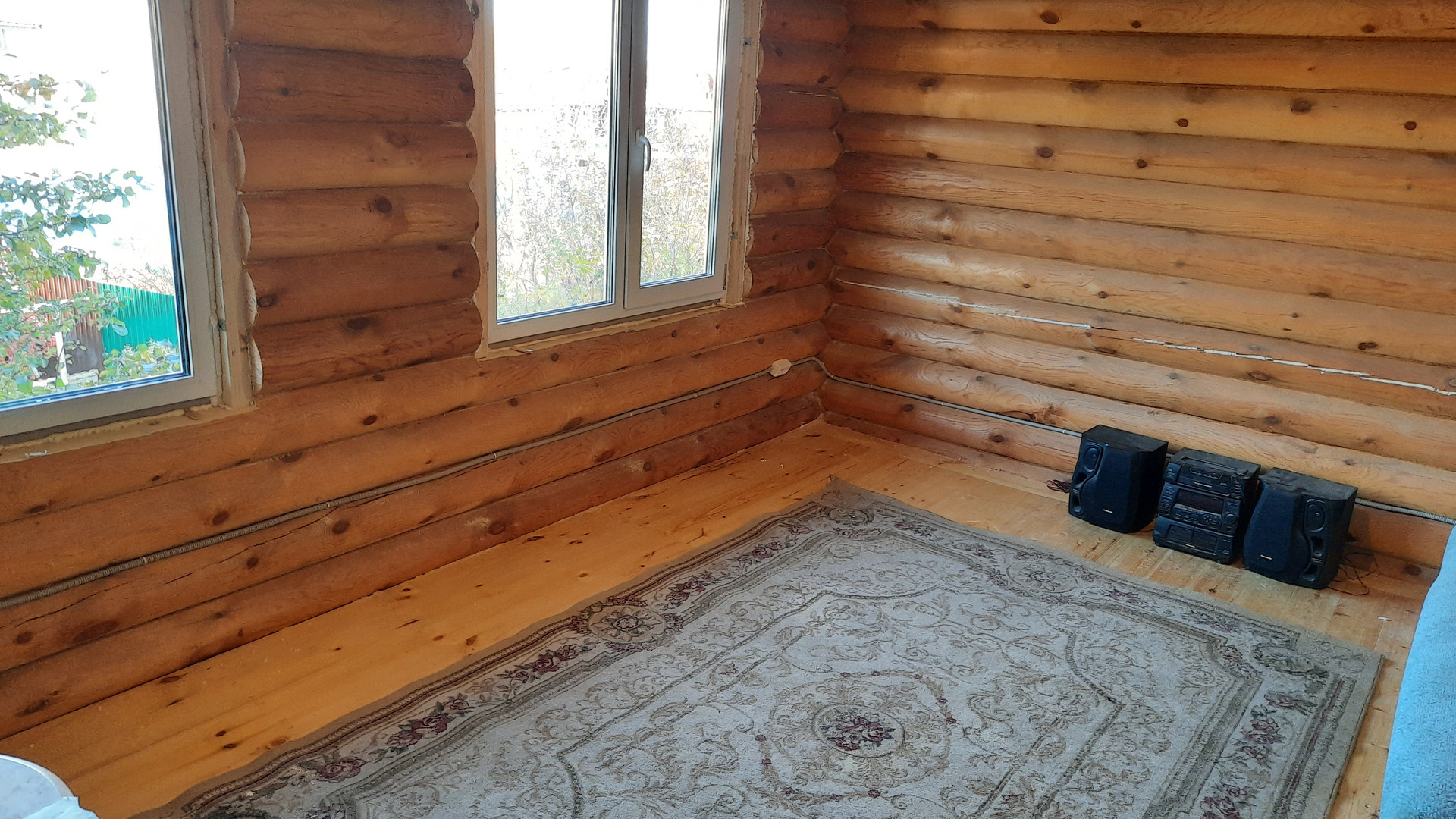 На участке есть строительный балок, пригодный для летнего проживания и место рассчитанное на 2-3 легковых автомобиля.