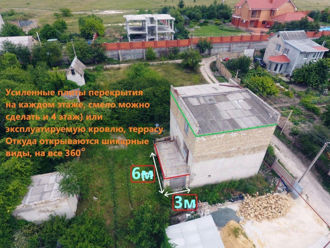 Три этажа, ровный, широкий участок, удобный подъезд с двух сторон. Участок выходит сразу на 2 улицы.