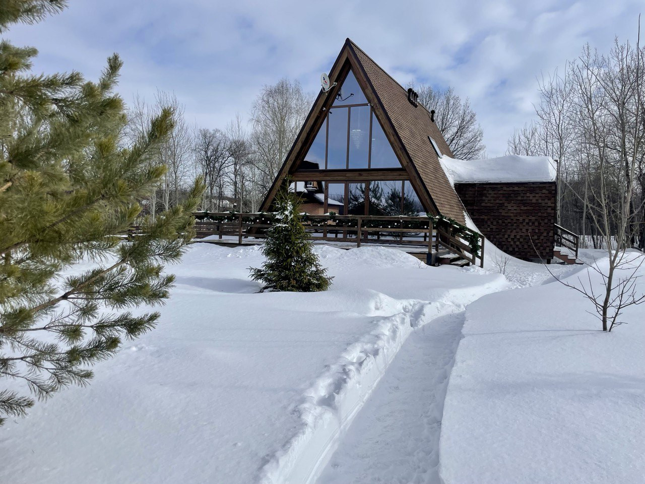 Каркасный дом в стиле а-фрейм для круглогодичного проживания, заводской домокомплект, основа - клееный брус и доска камерной сушки влажностью не более 10%. При строительстве используются только высококачественные материалы, все согласно СП, СНиП и ПУЭ.