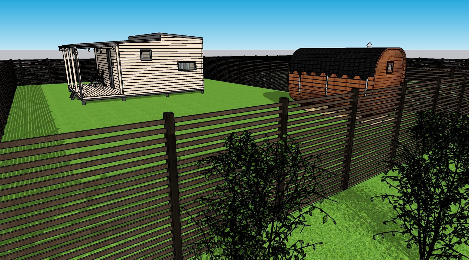 - На участке баня-бочка.