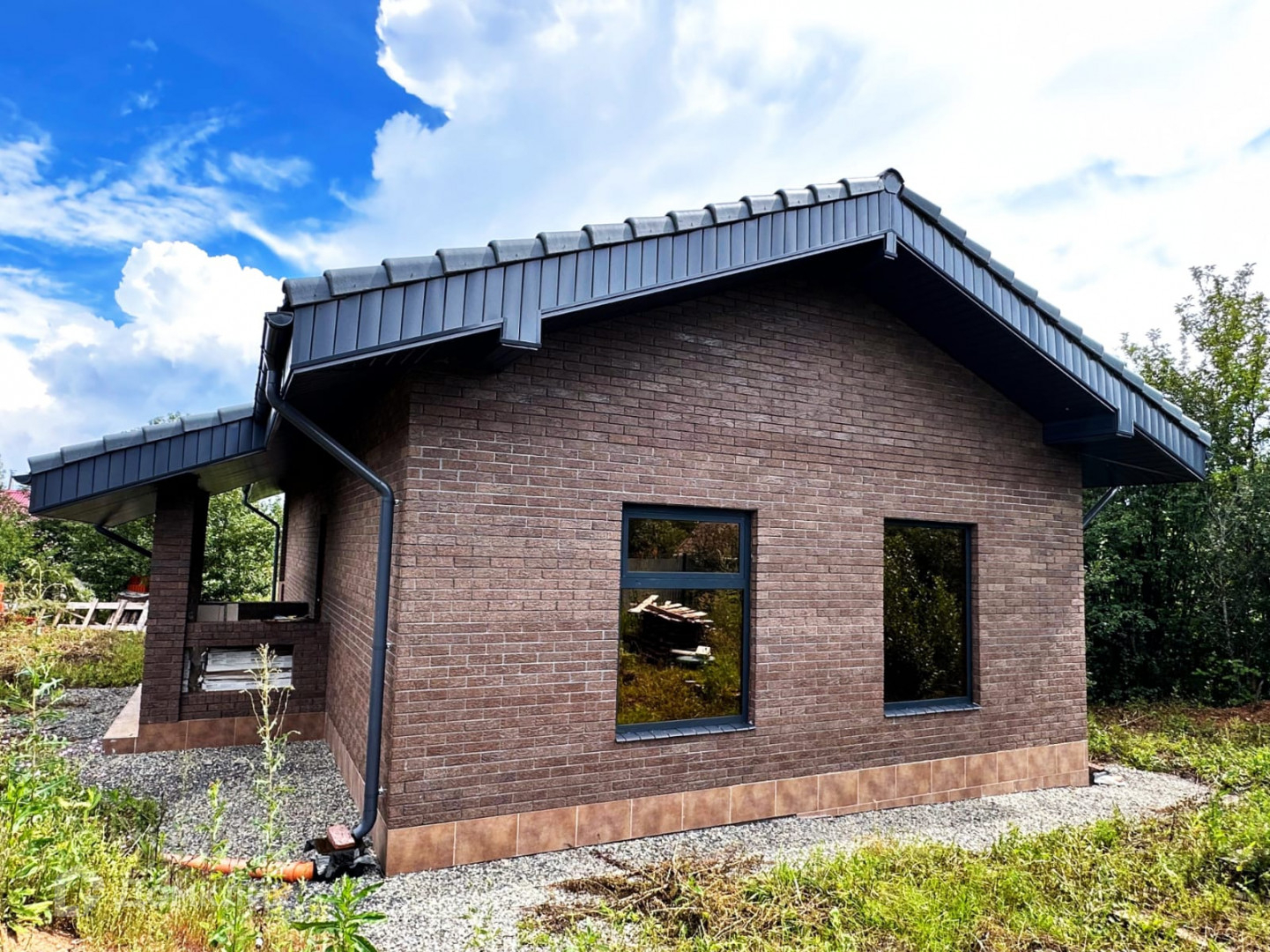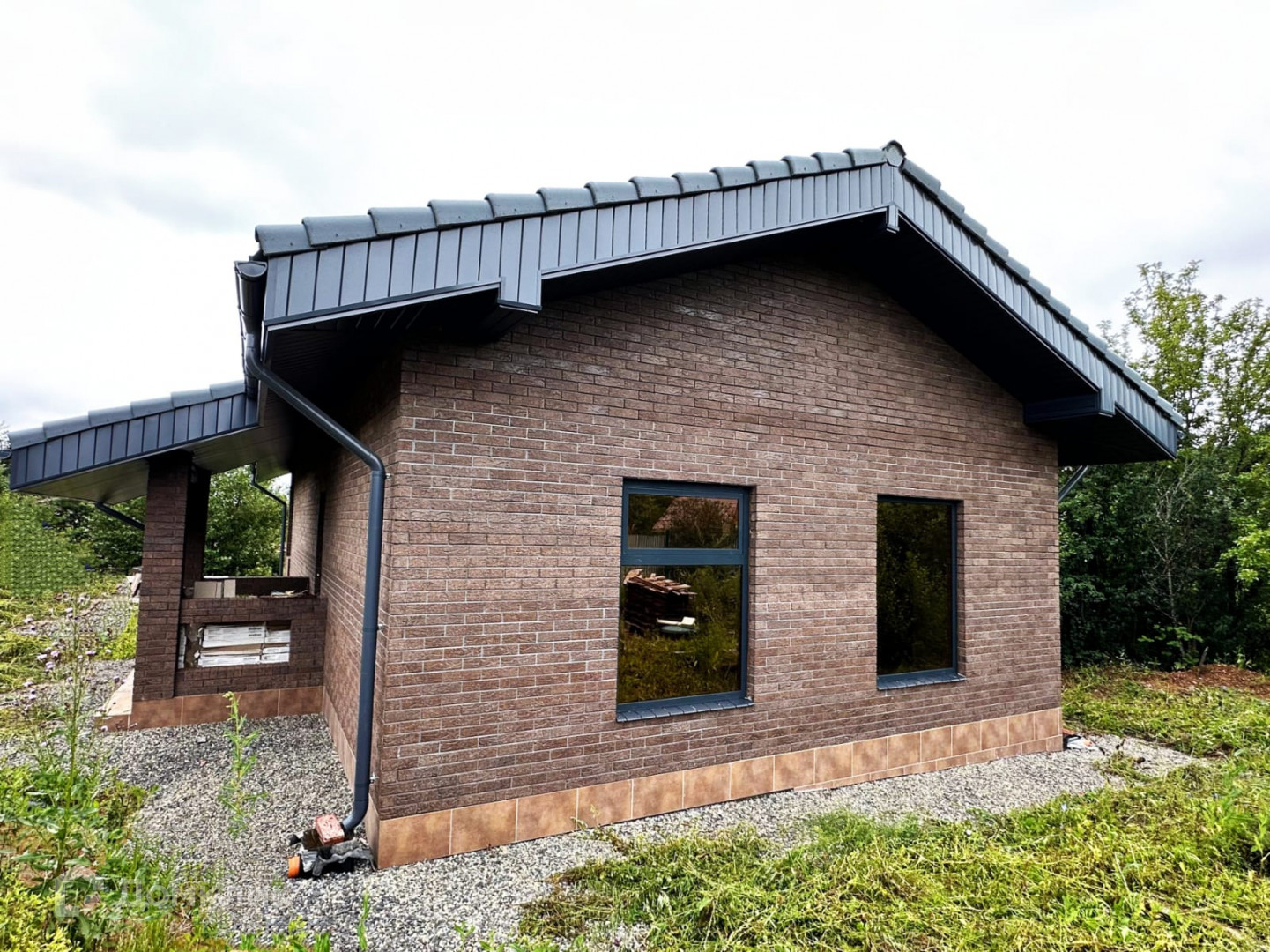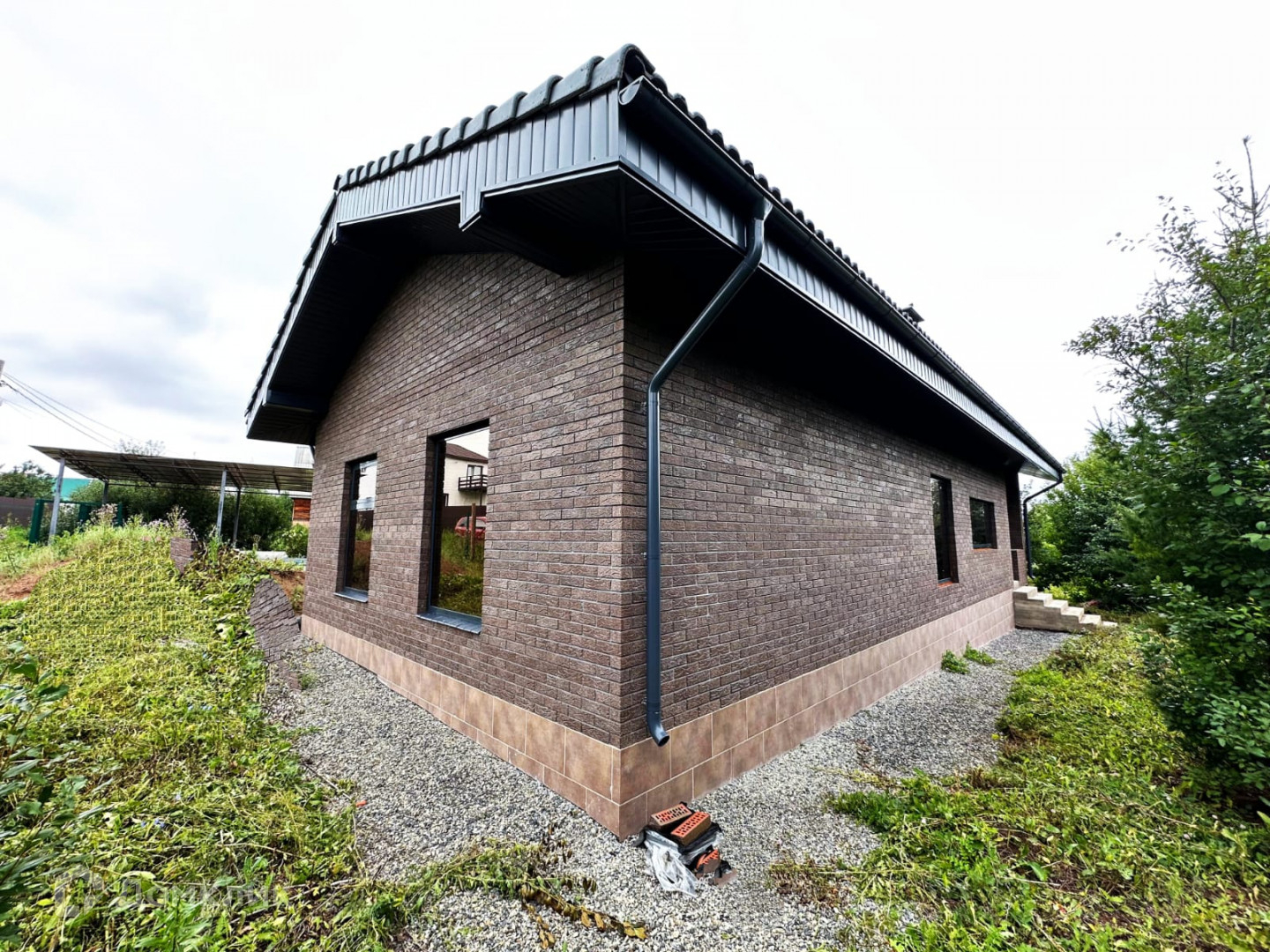 Водосток металлический по периметру всего дома.