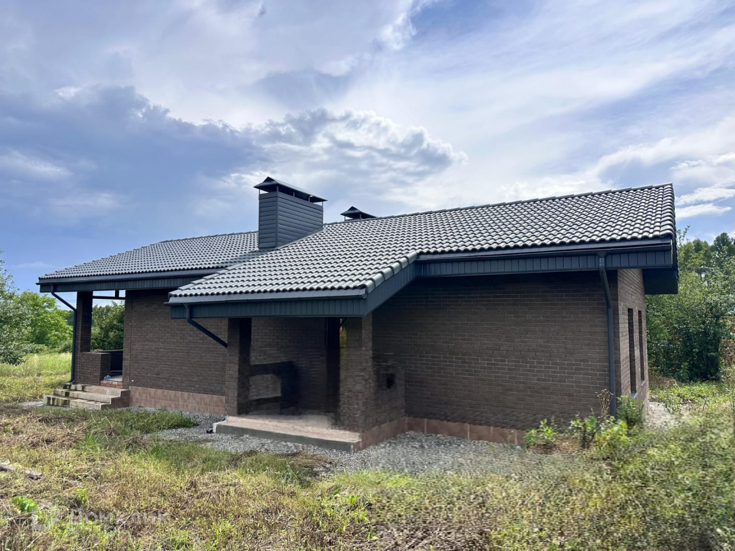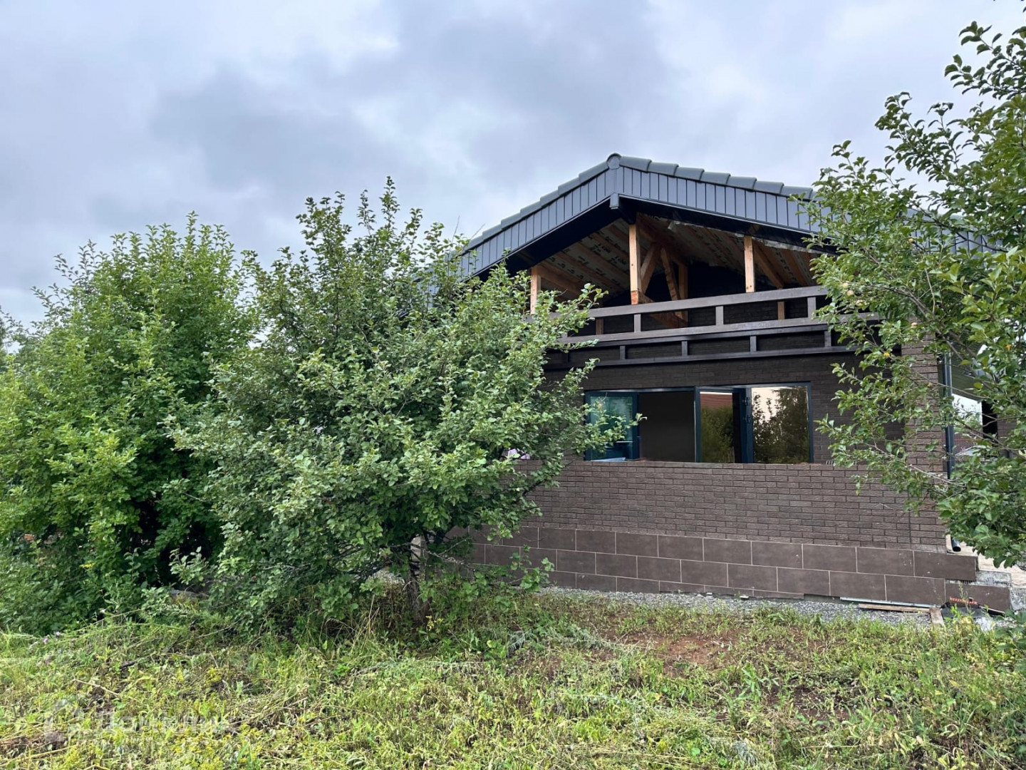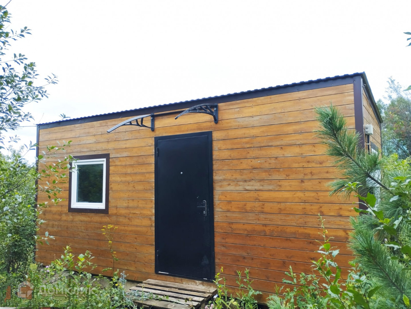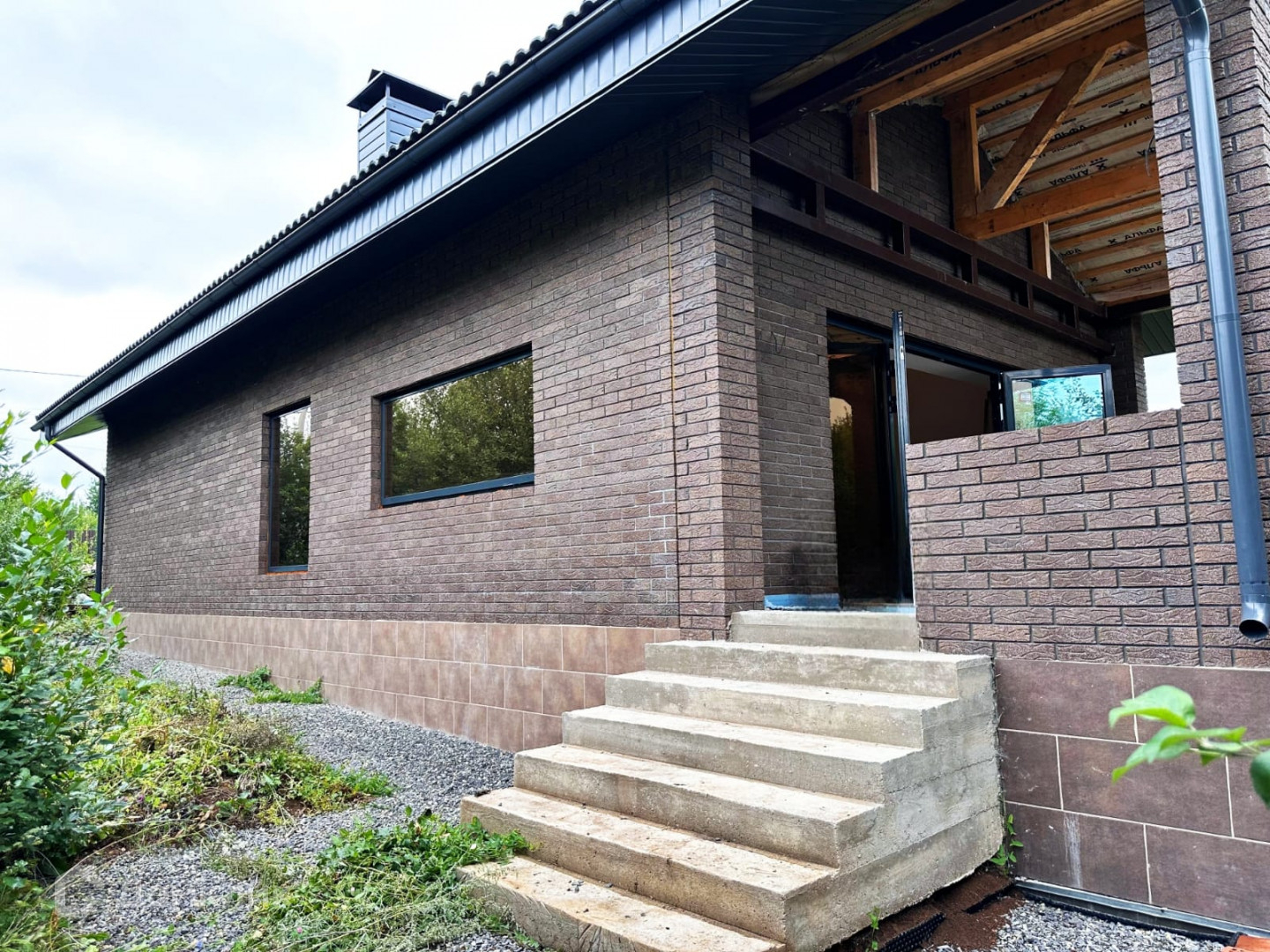 Водосток металлический по периметру всего дома.