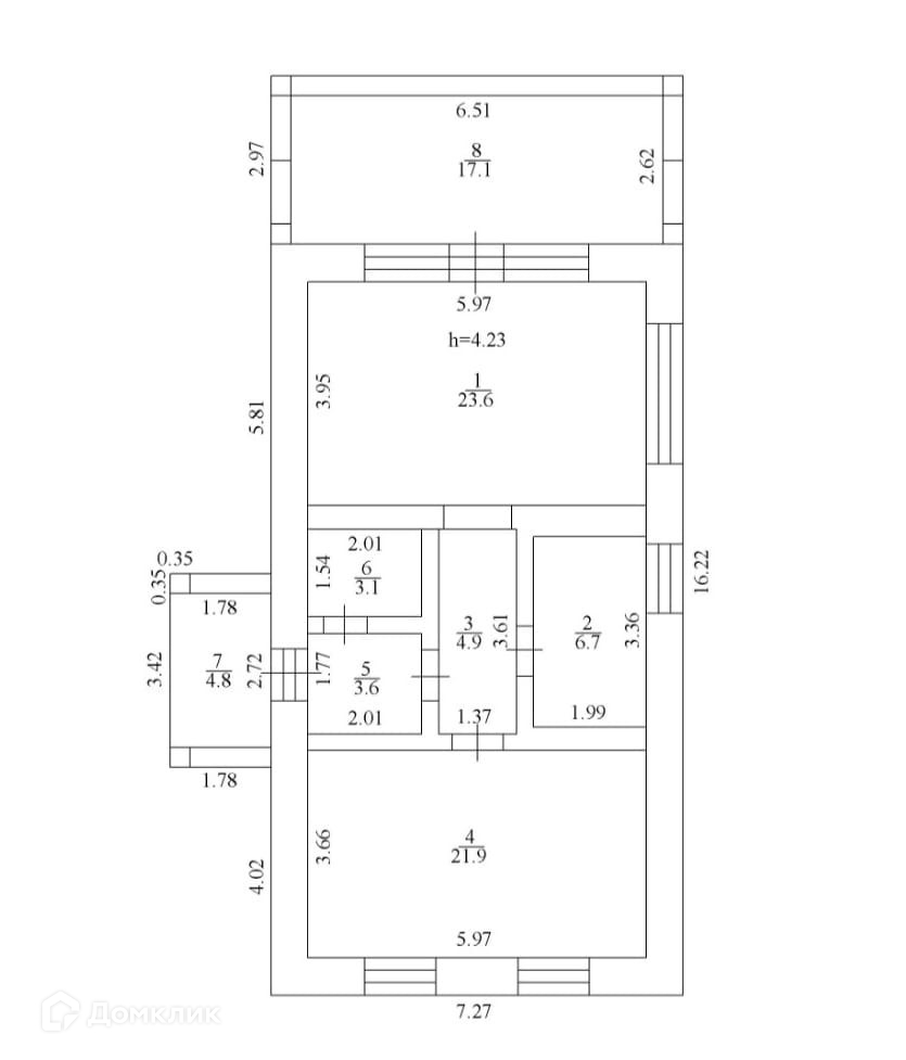 Высота потолка в коньке 4,2м.