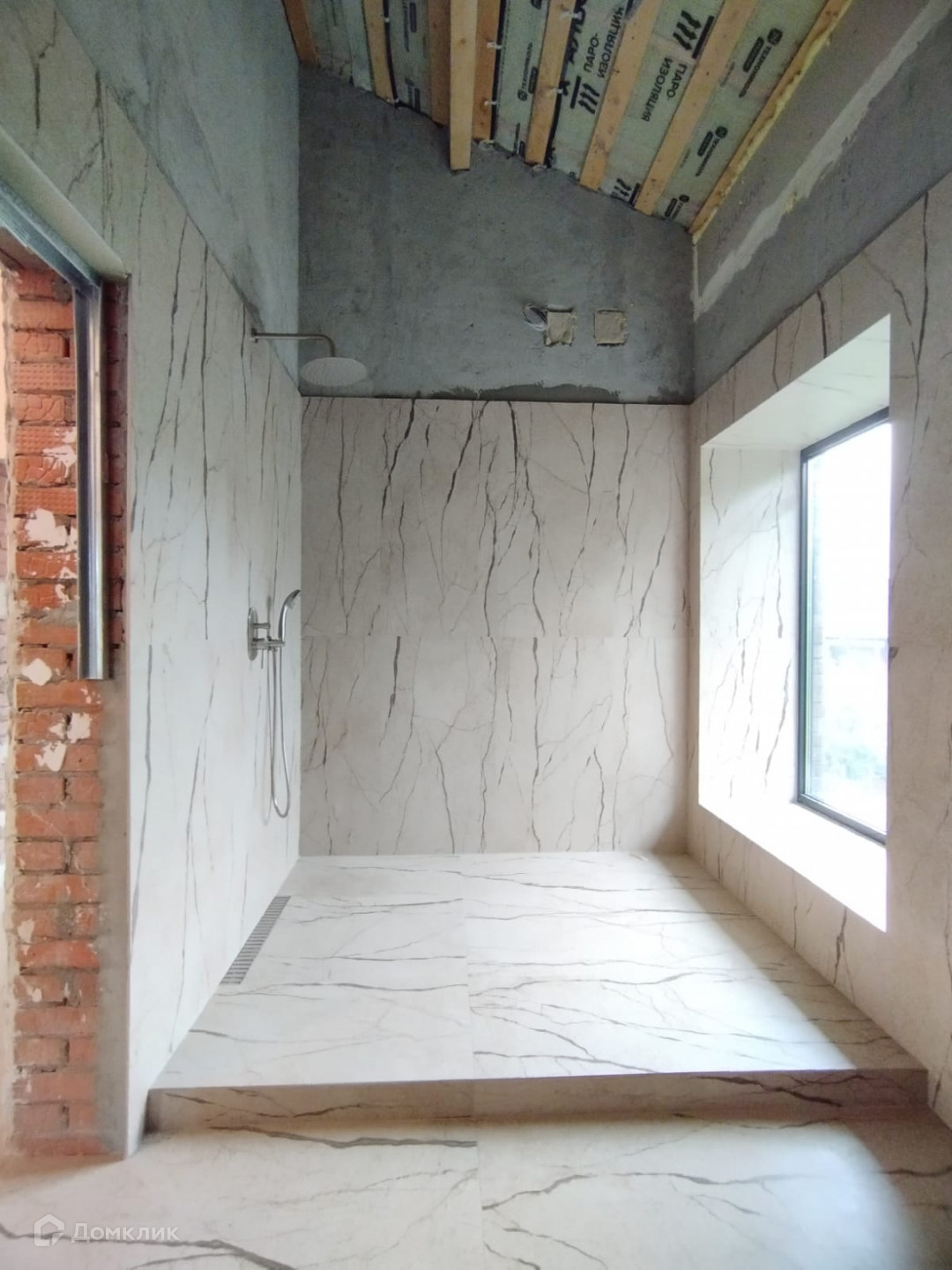 Стена: из крупного камня толщина 560мм. + керамический архитектурный кирпич.
