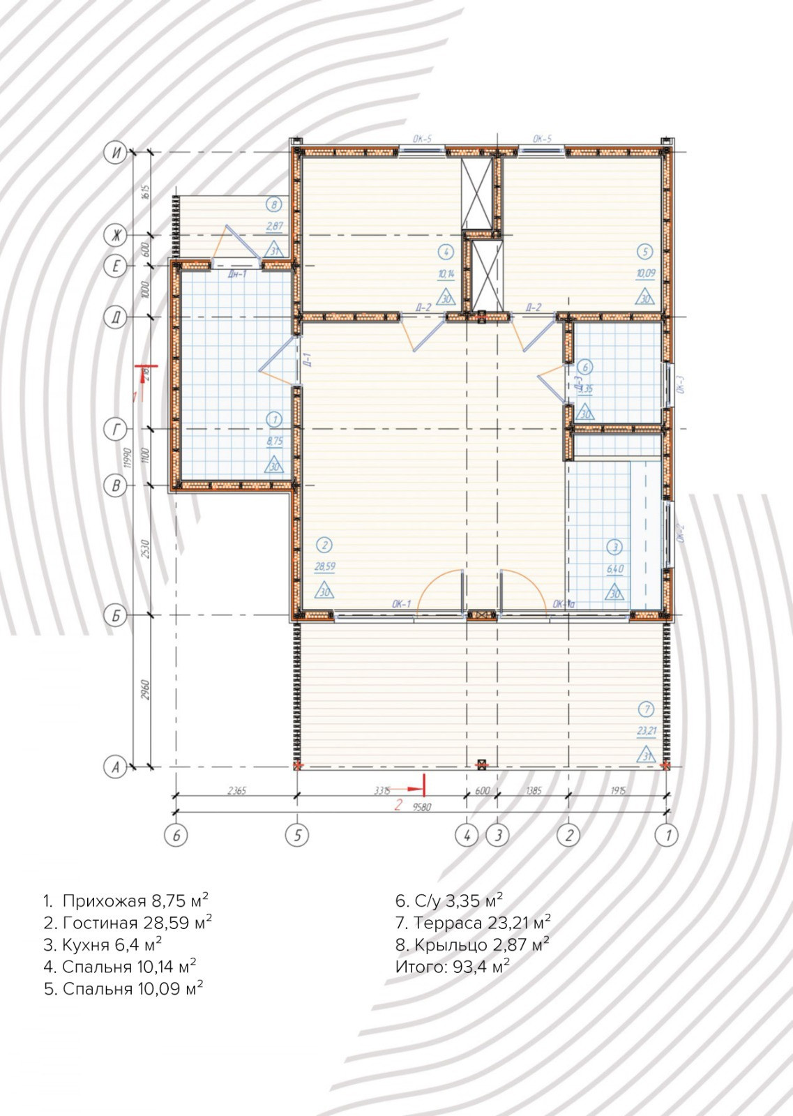 Общая площадь 93 м2