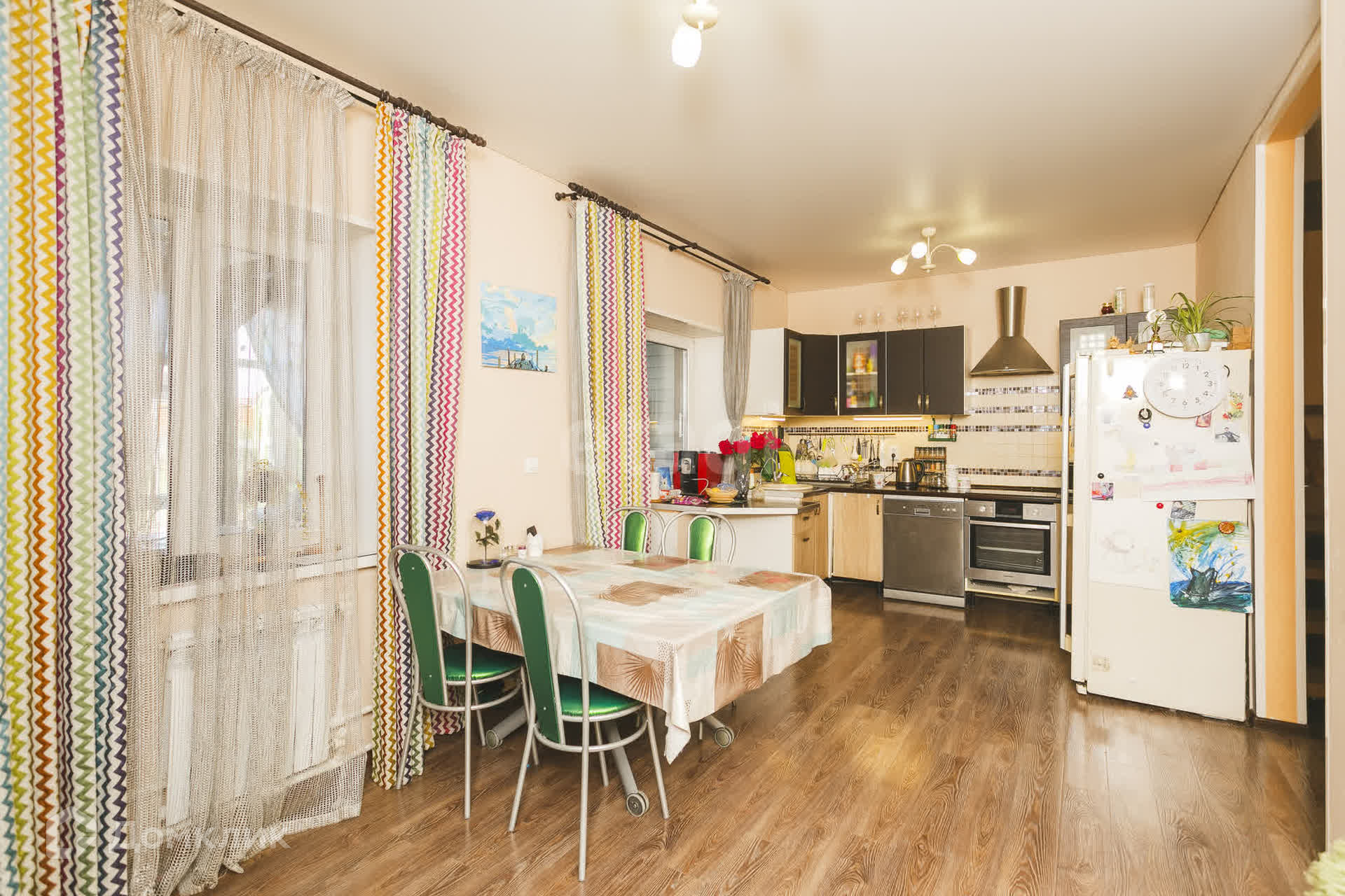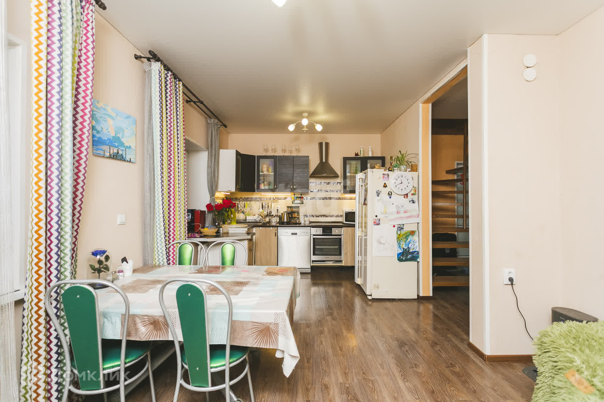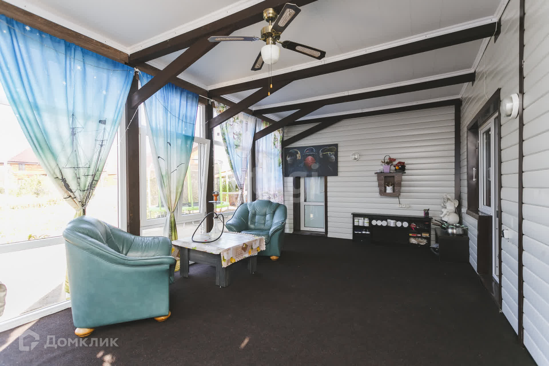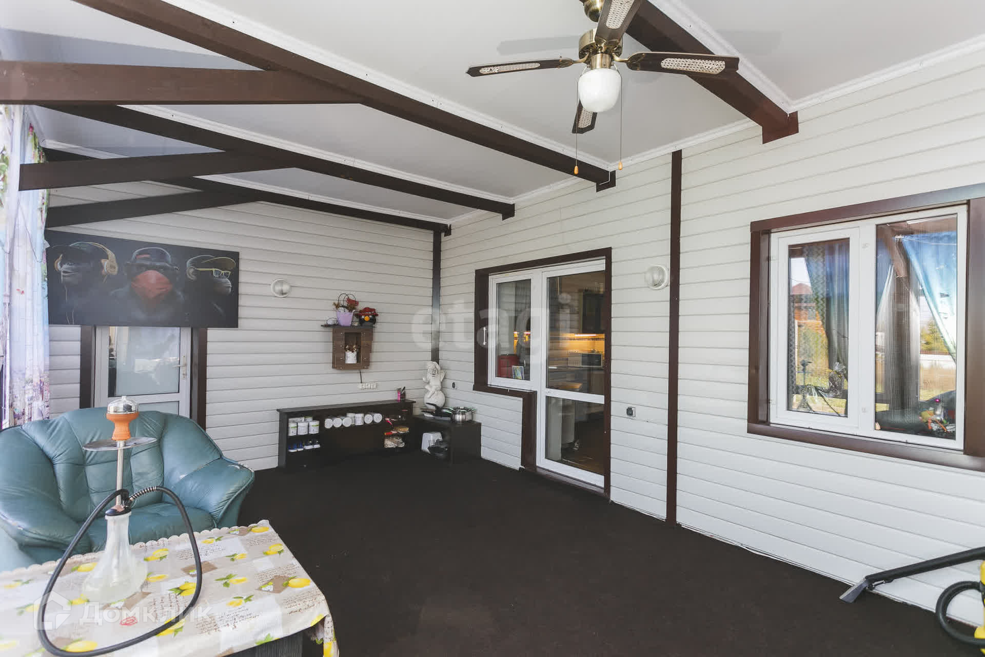 на 1м этаже кухня, гостиная, комната, пpиxожaя, c/у, +веранда застеклённая 34кв.м.