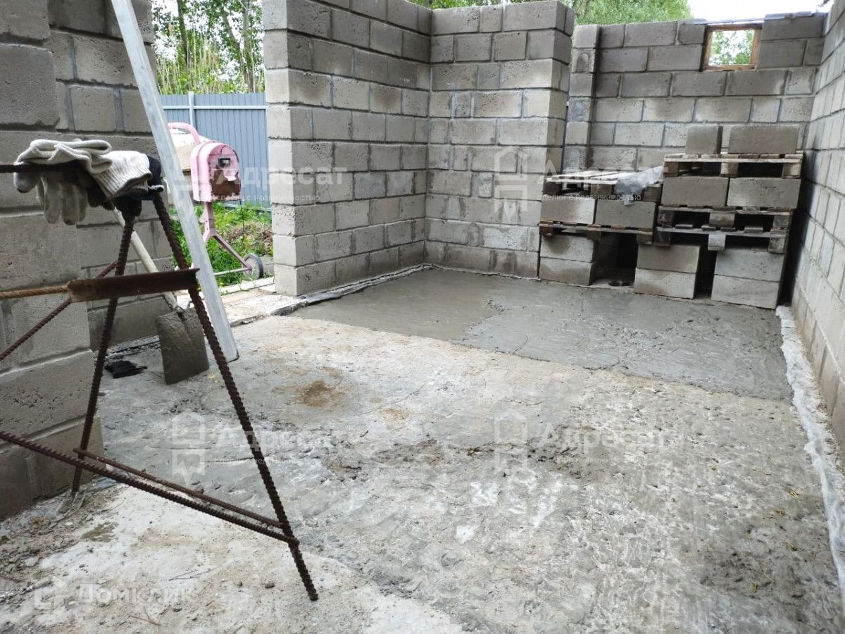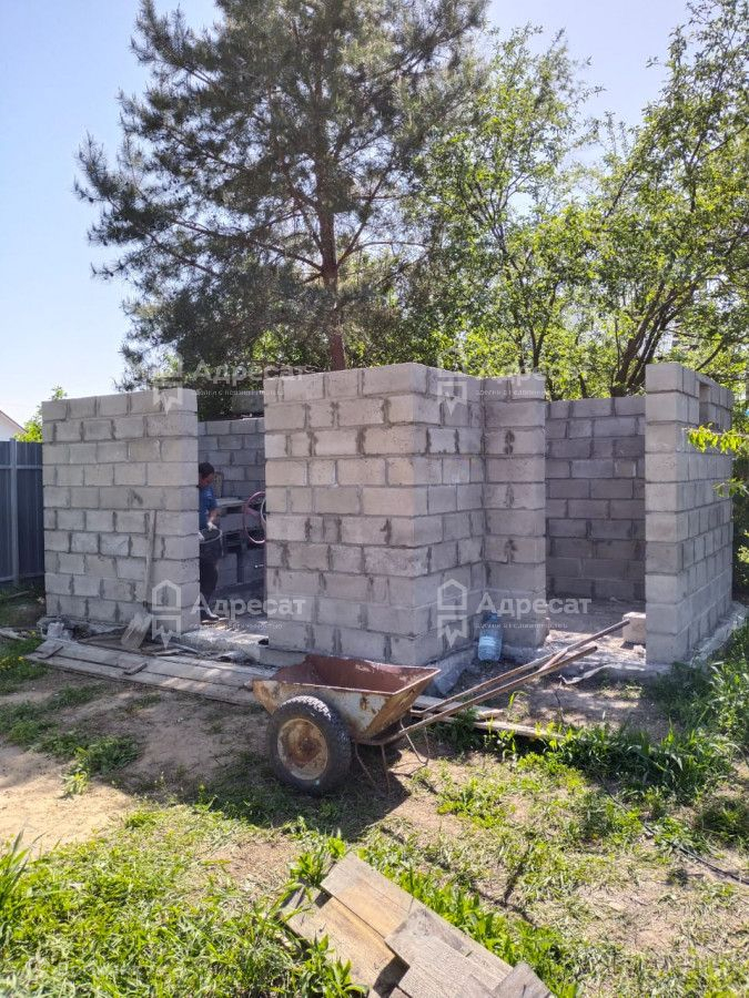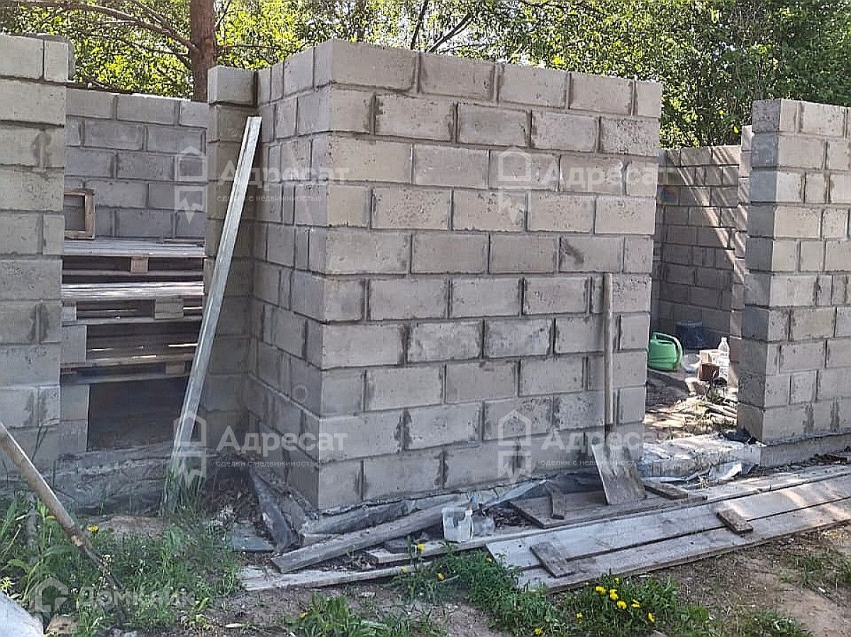 На участке блочная постройка.