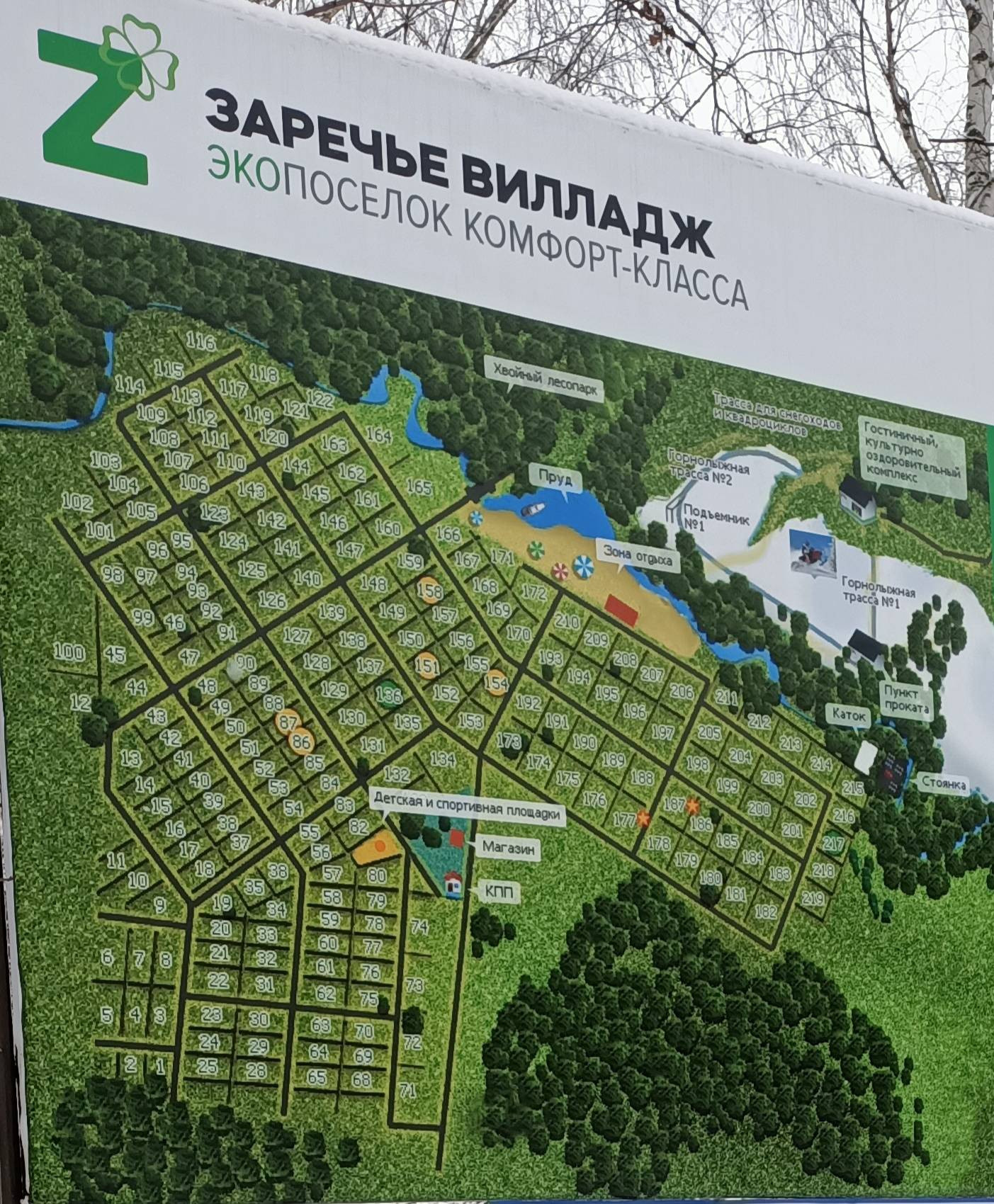 Рядом Горнолыжный комплекс «Заречье Вилладж» Дорога асфальтированна ,  охраняемая территория .