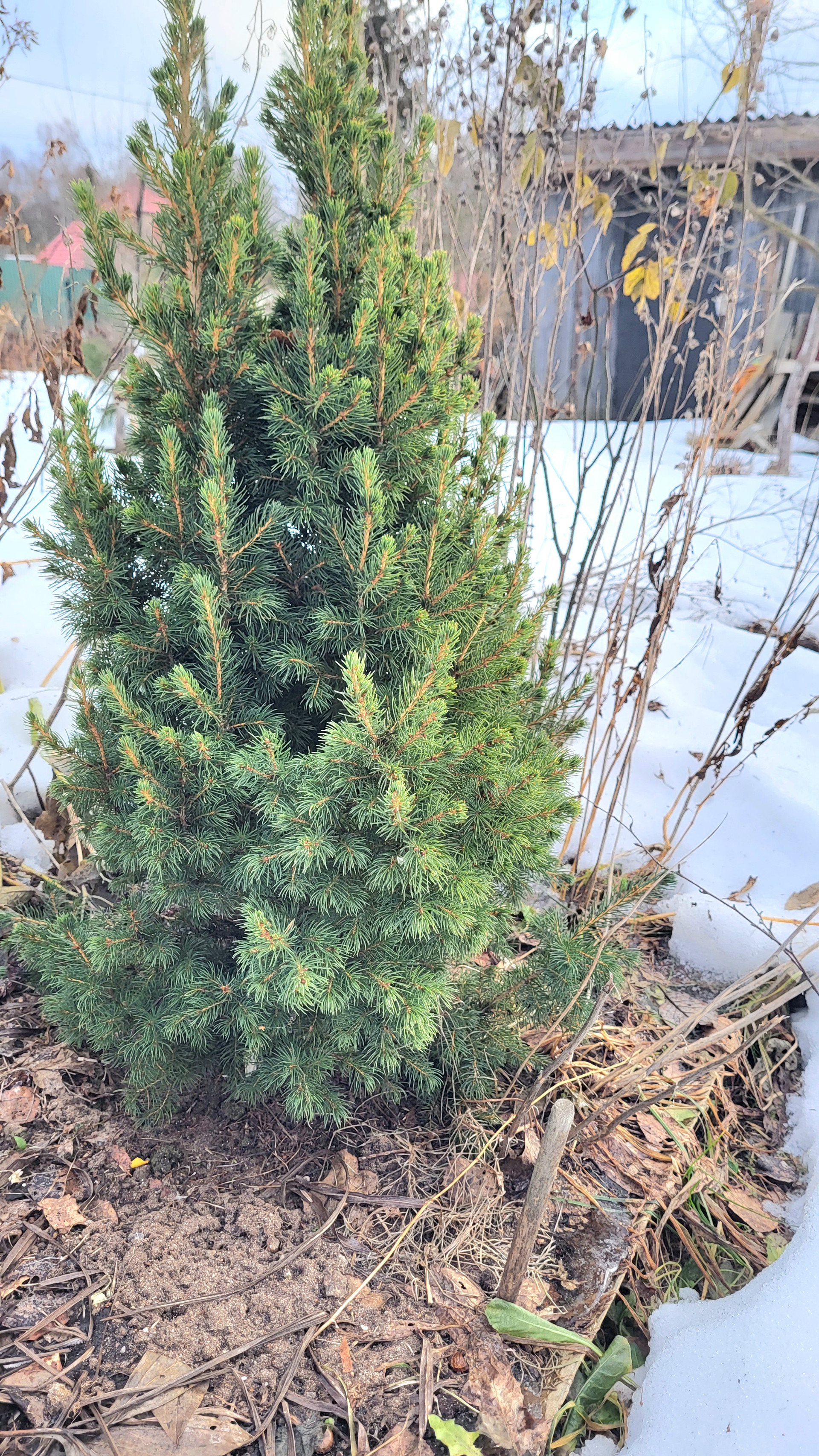 Высажены плодовые деревья и кустарники. Молодой кедр, кипарис, туя и другие растения.