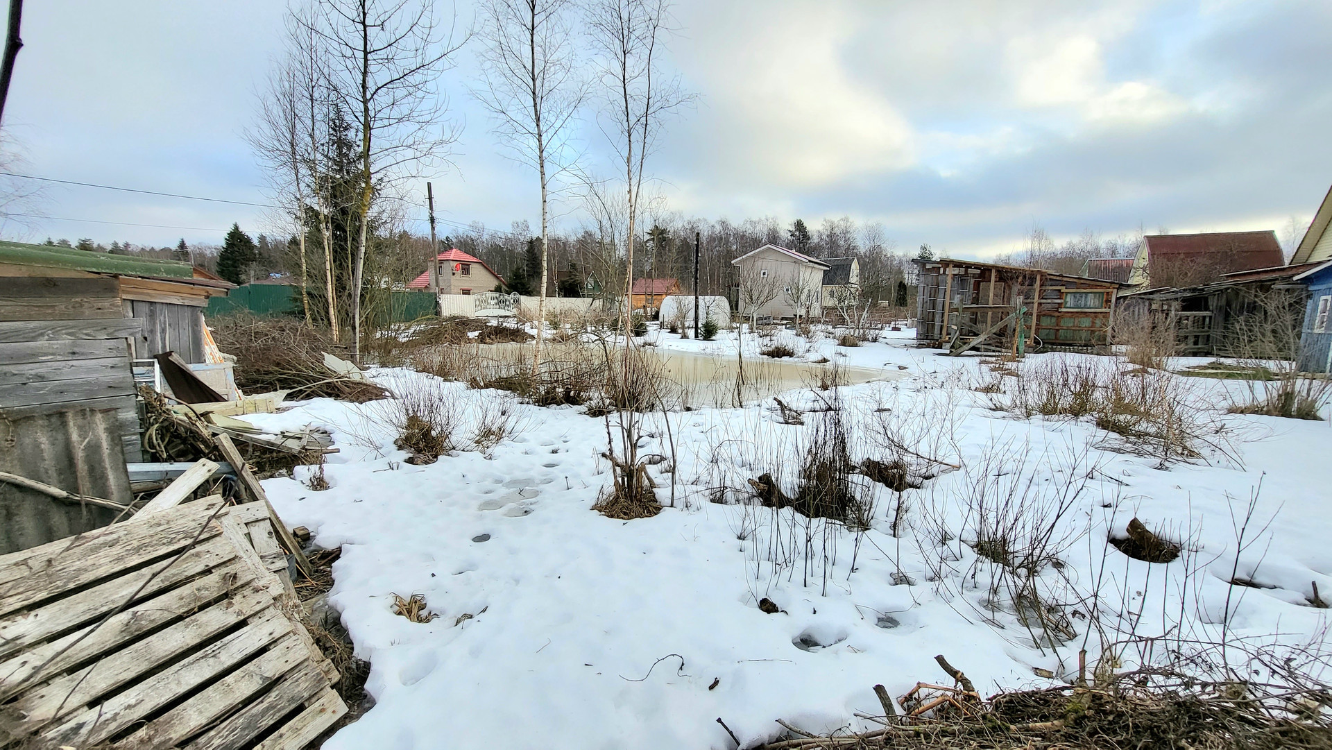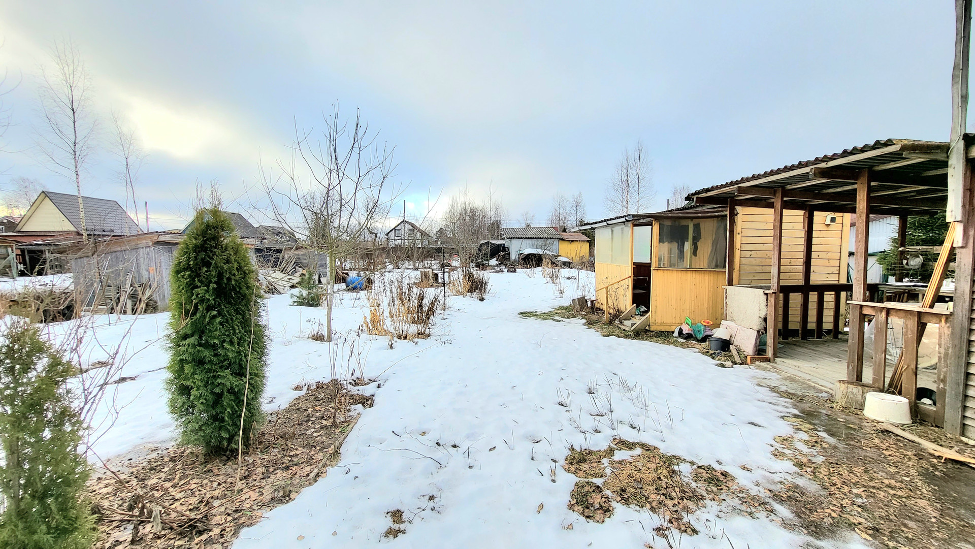 Старое развитое садоводство недалеко от города Кировска.