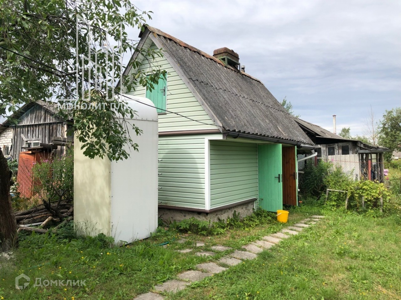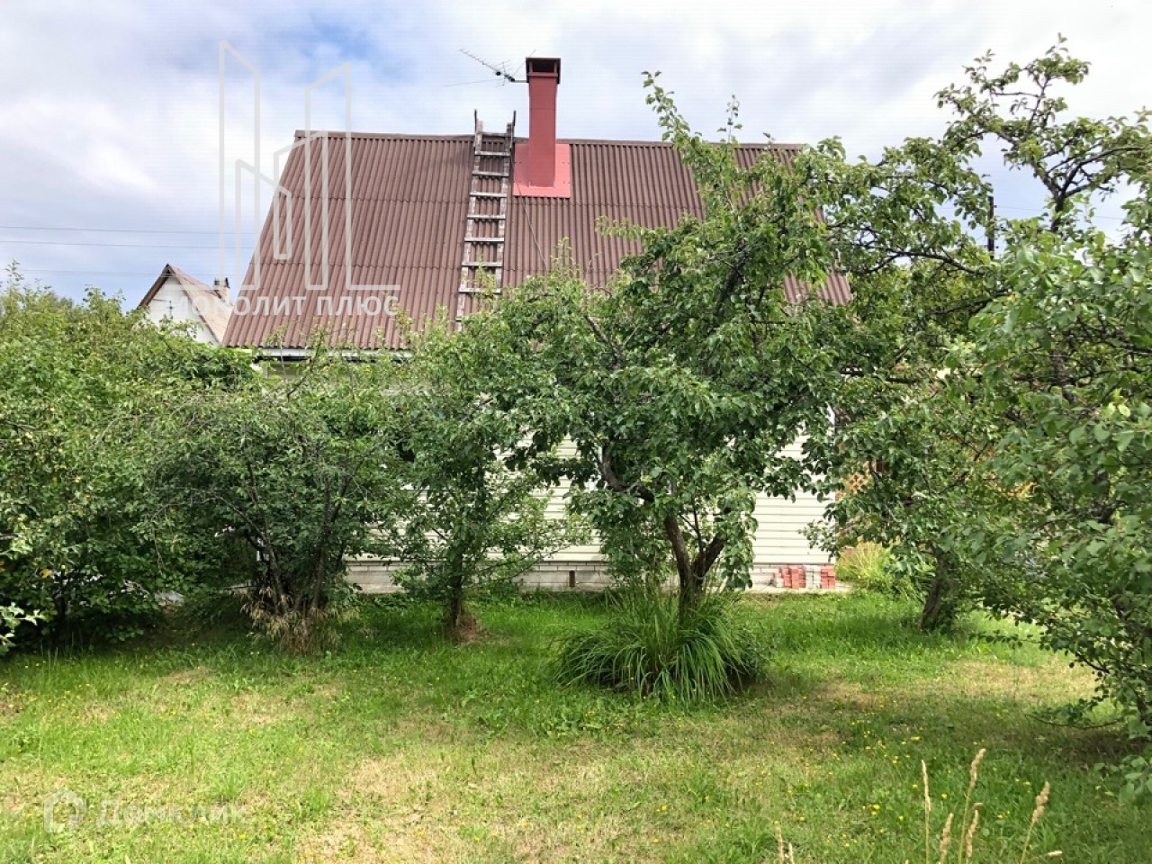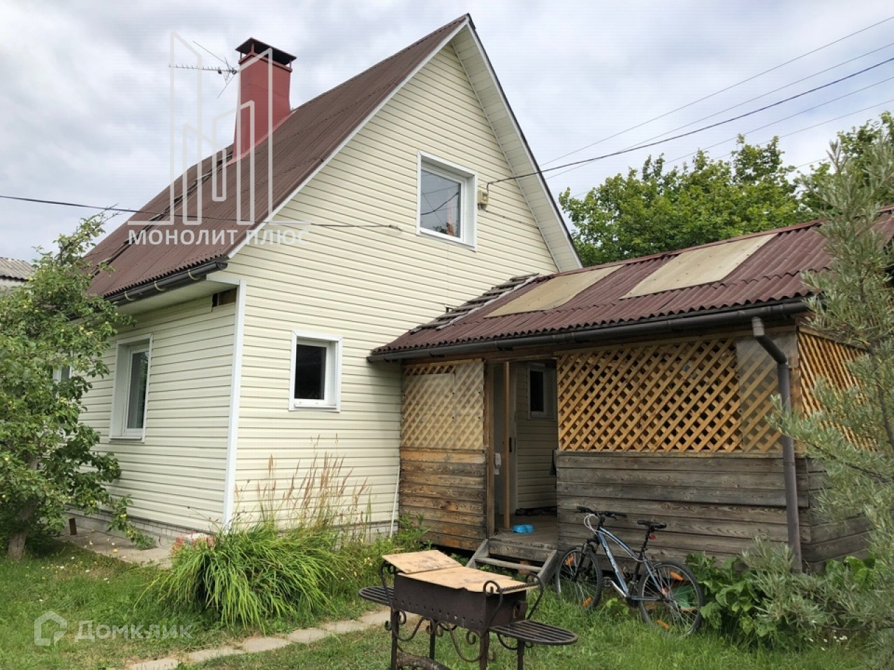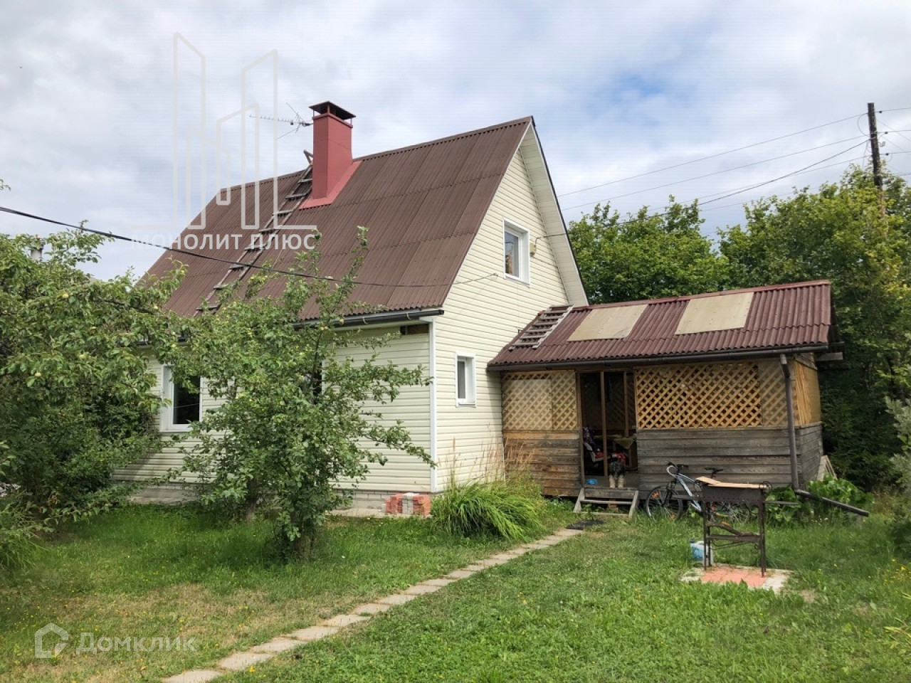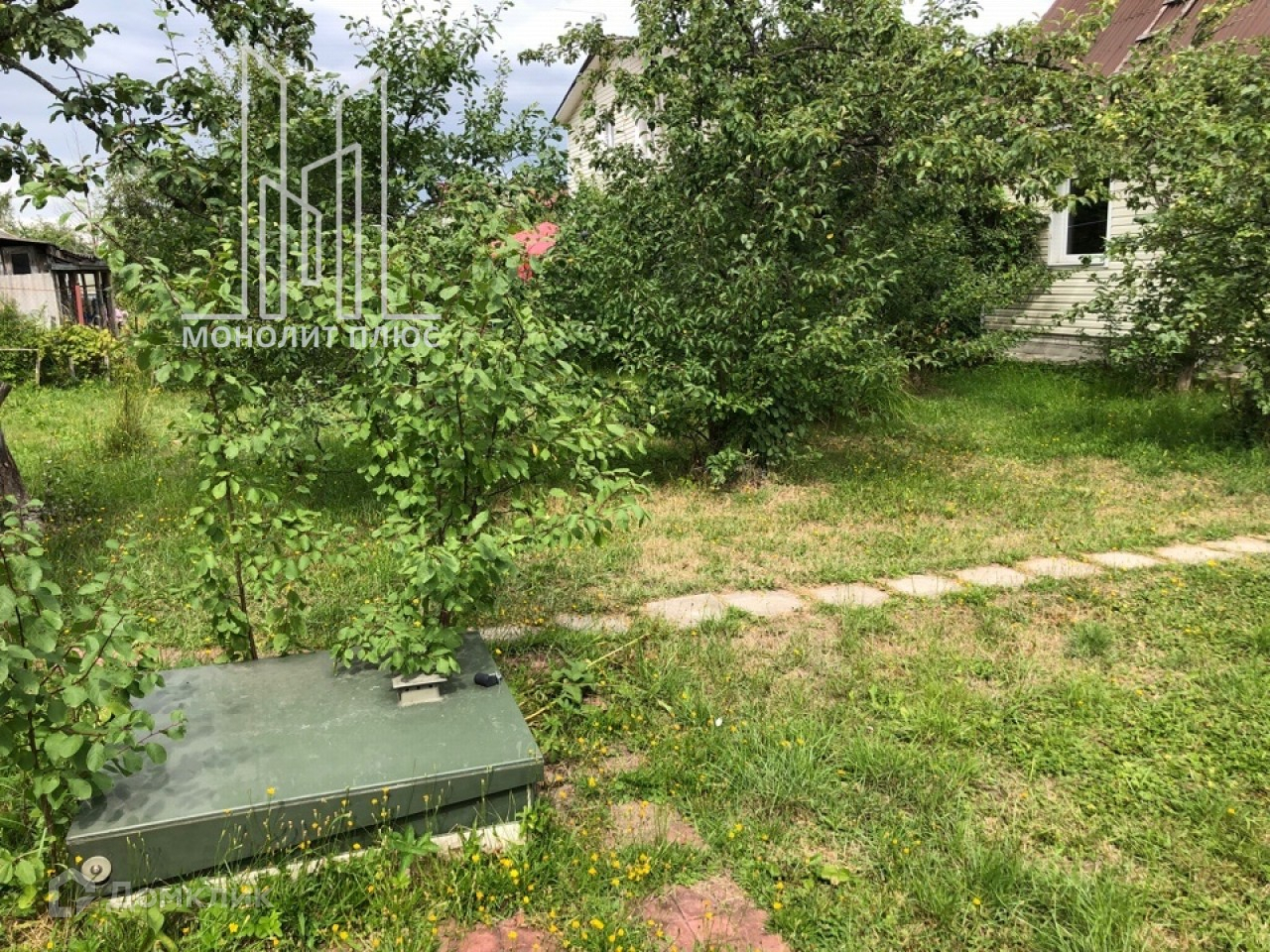 На участке: хороший сад (сливы, плодовые кусты, яблоки), много цветов, газон, мангал.