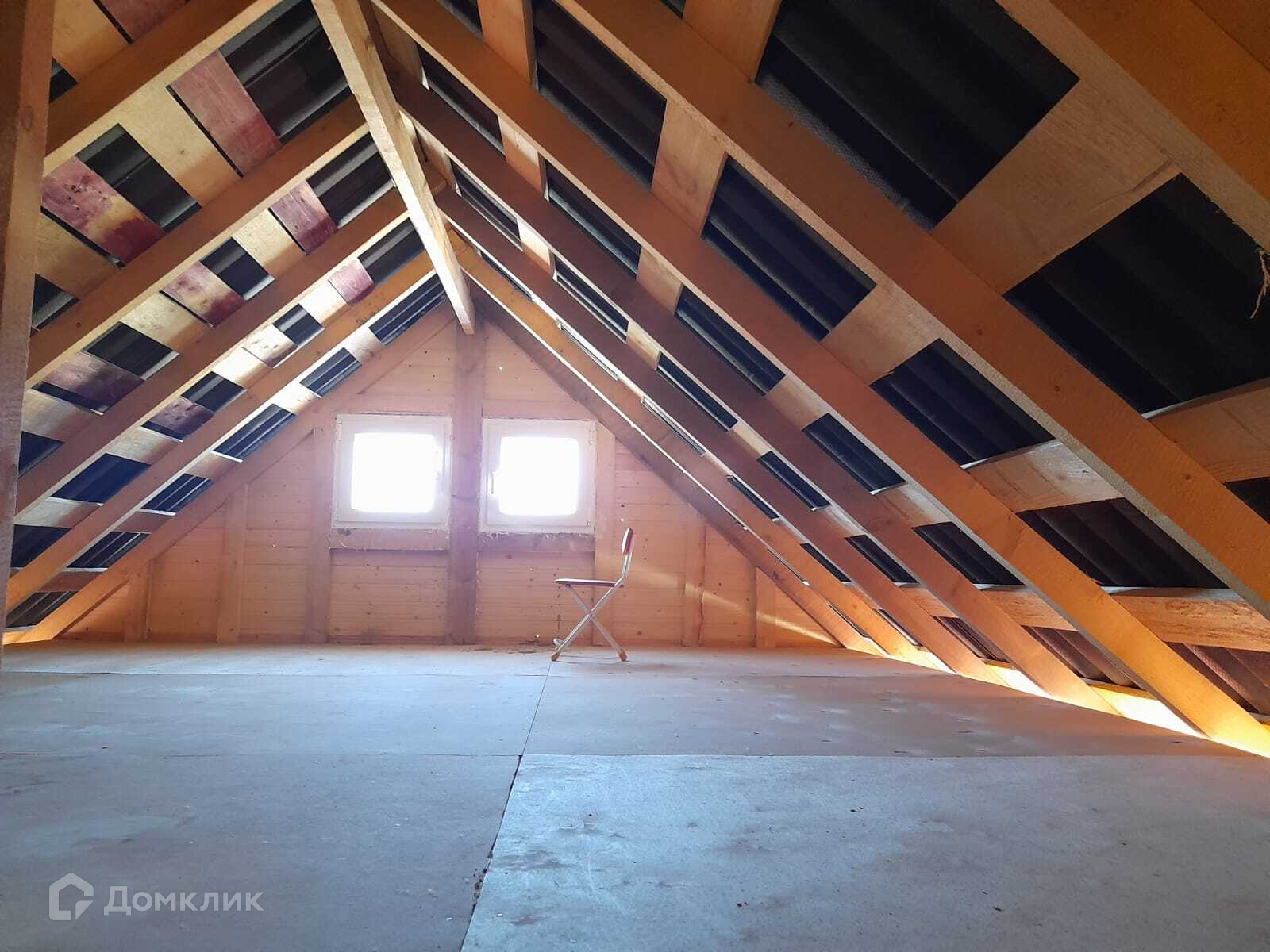 2-й этаж не оборудован, но высота конька позволяет сделать там полноценную комнату.