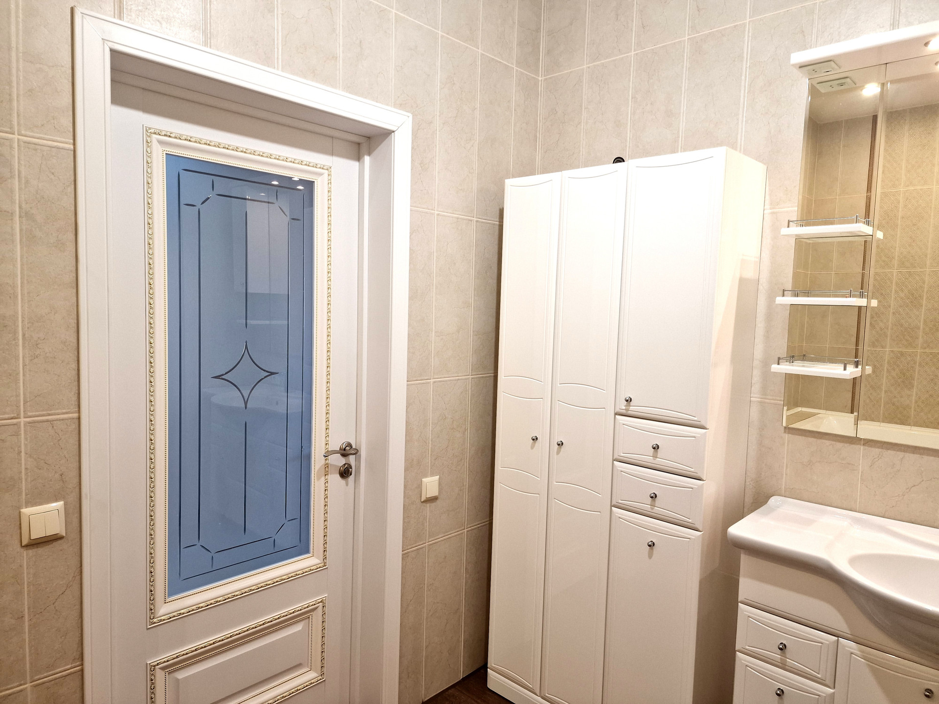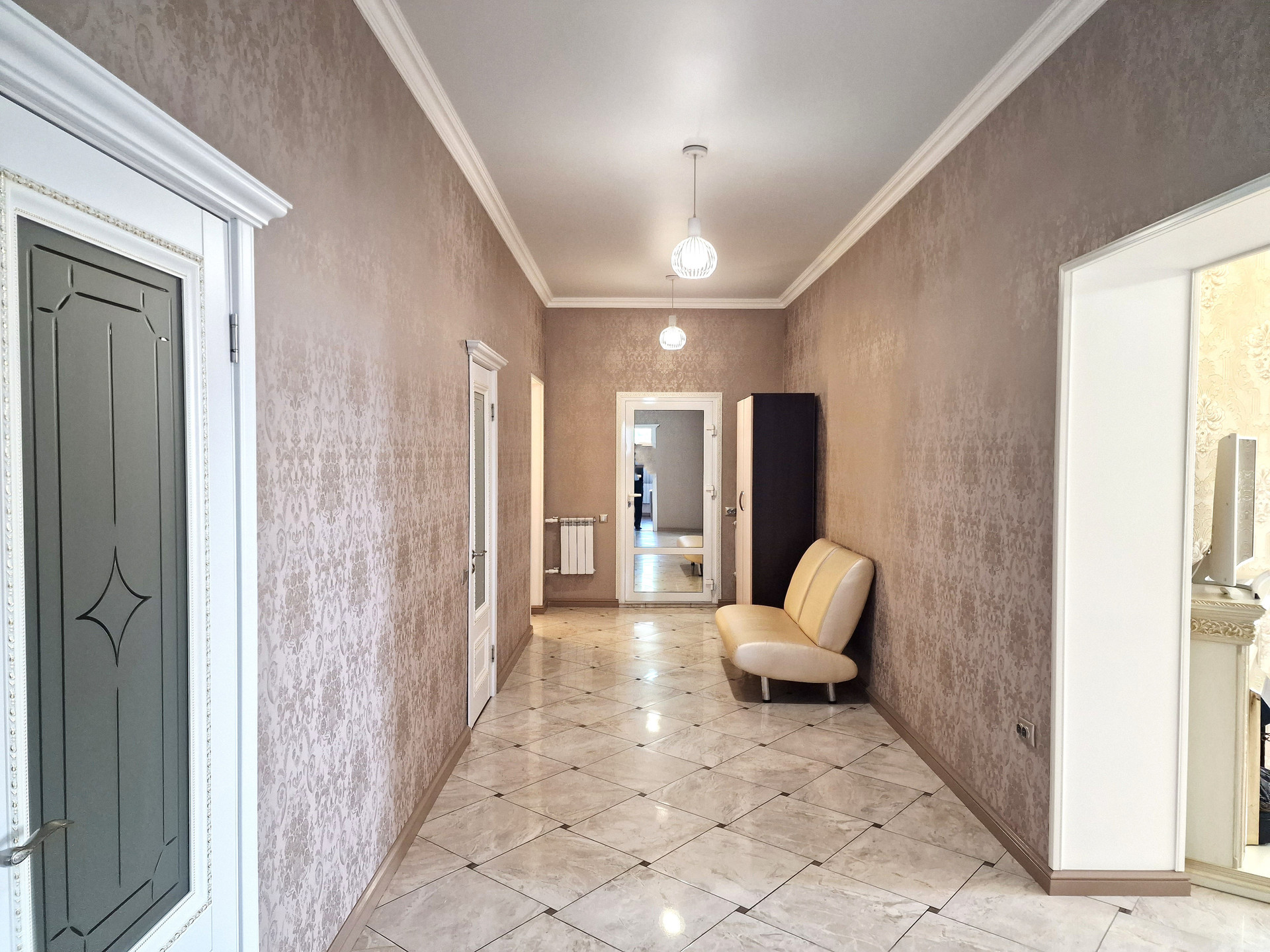 Для создания особого атмосферного эффекта в доме использовались теплые и нежные тона, дополненные изысканными элементами интерьера. Каждая комната пропитана любовью и заботой в каждой детали, которые создают неповторимую атмосферу уюта и спокойствия.