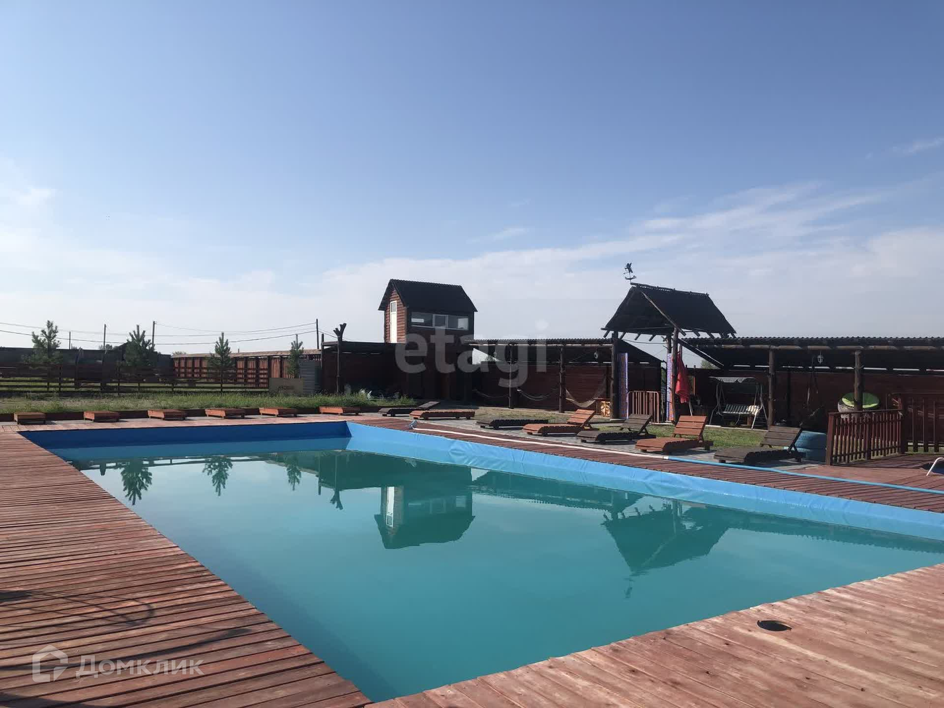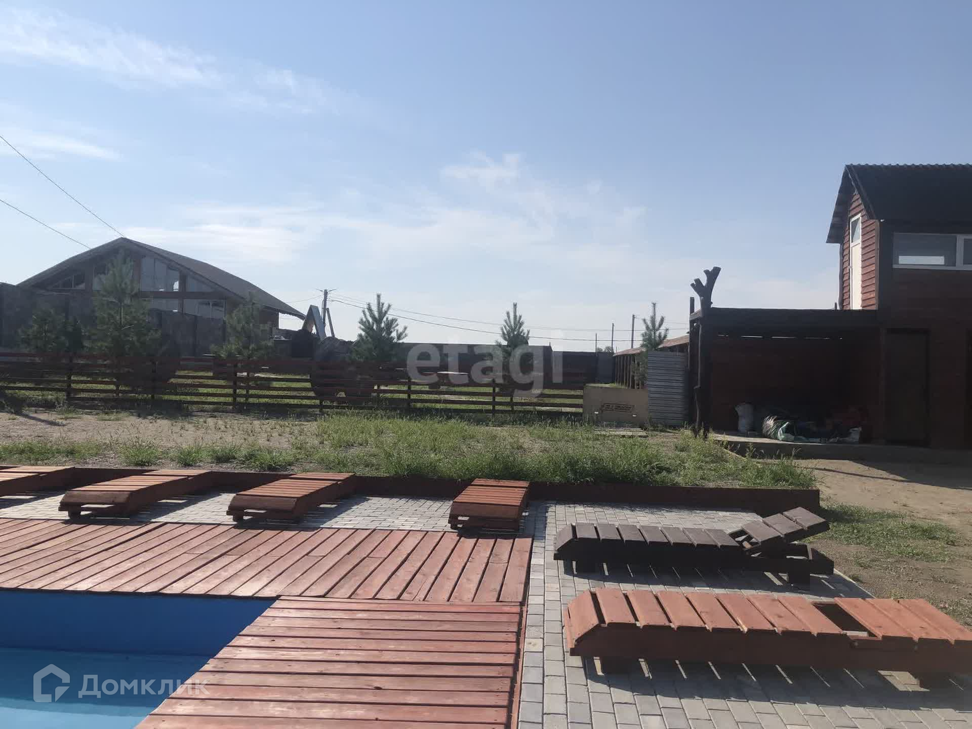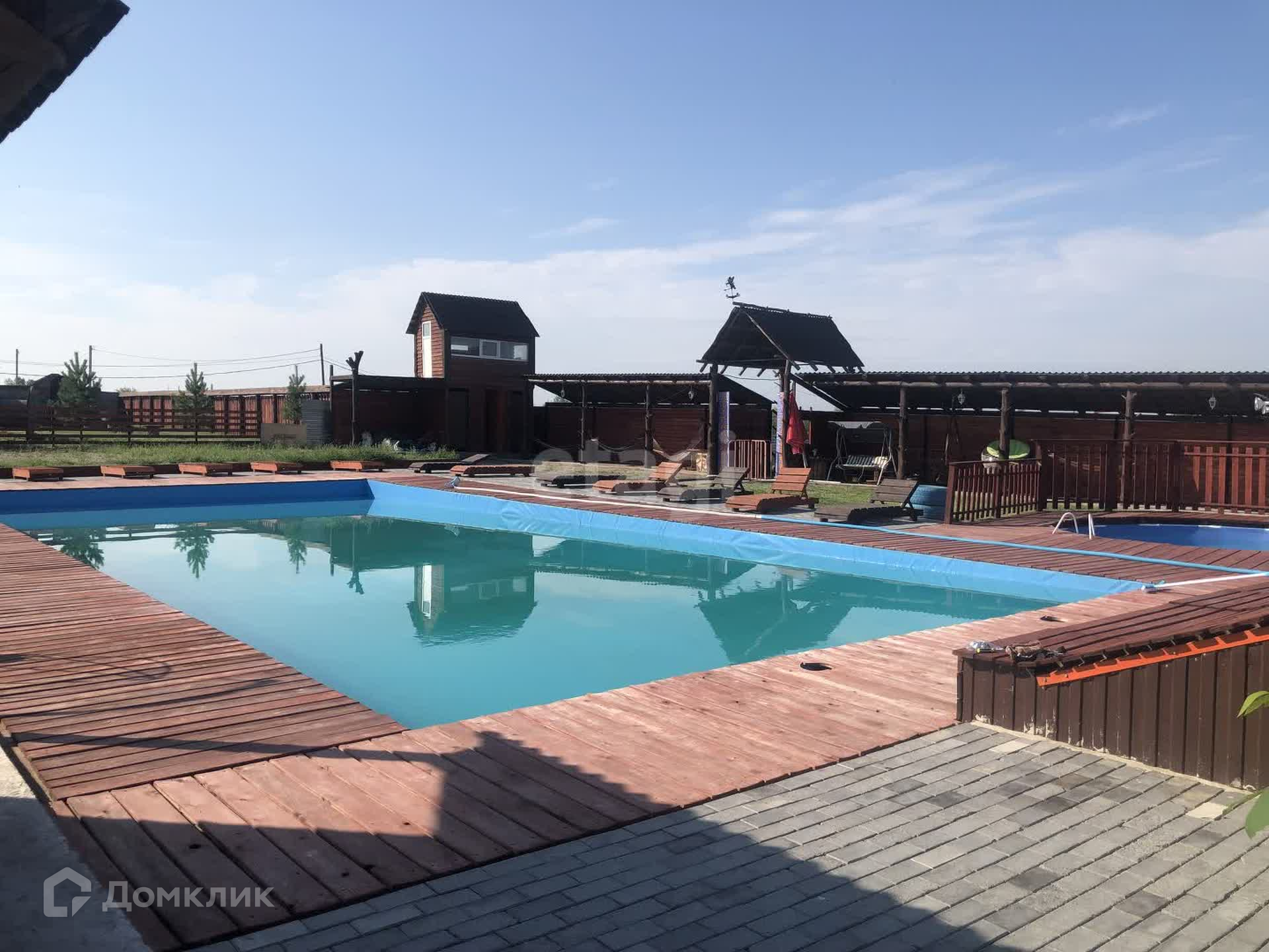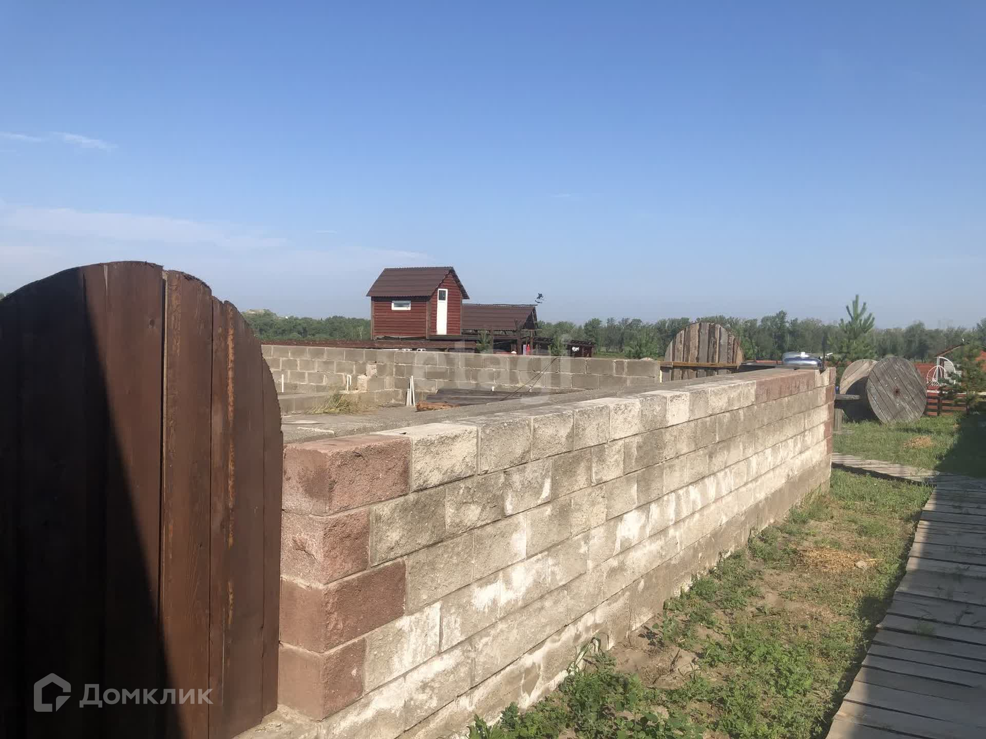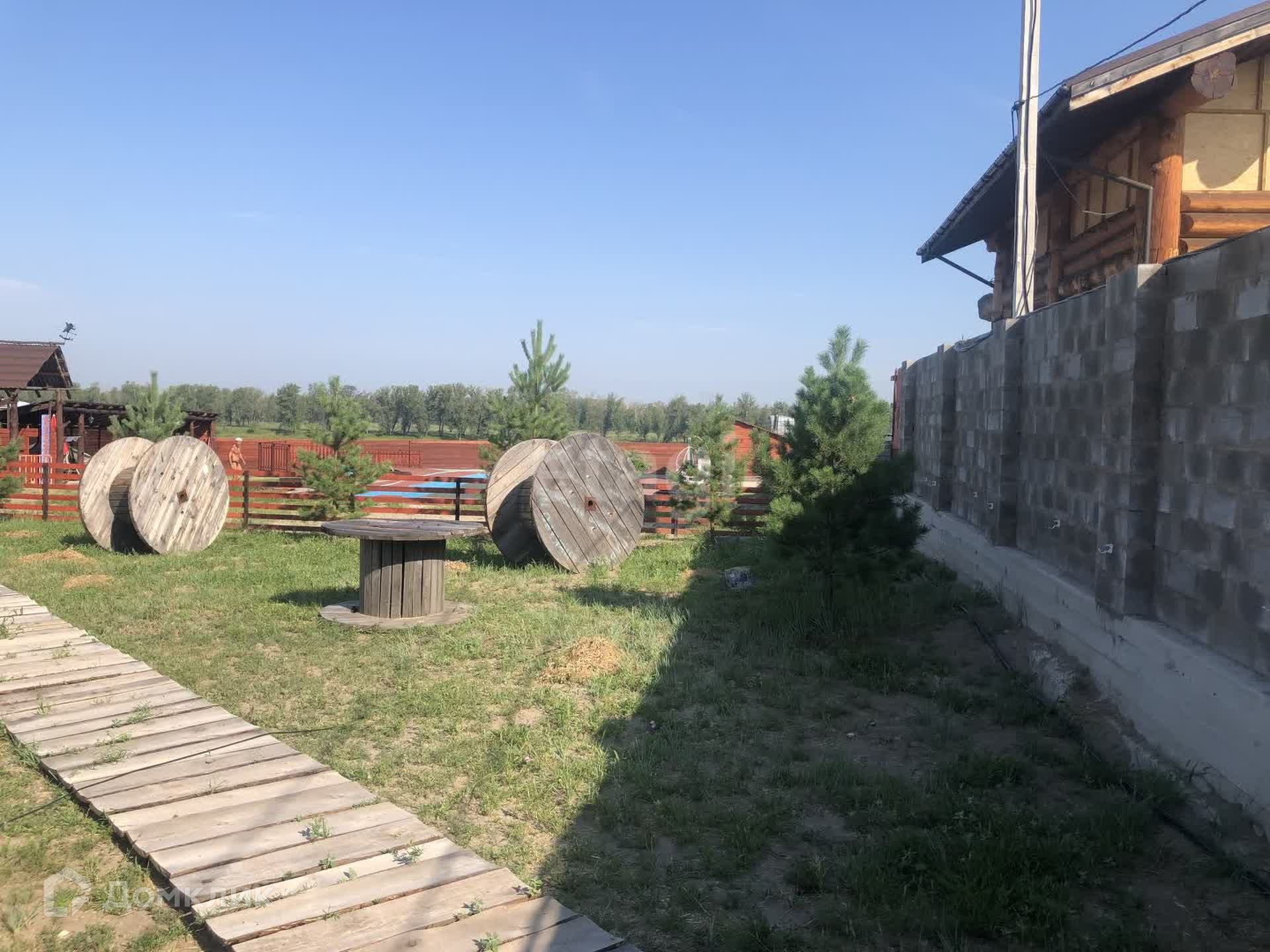 В продаже участок на берегу Енисея с банным комплексом и аквазоной. Первая береговая линия, прекрасный вид на реку Енисей. На территории данного участка есть два бассейна, баня, джакузи, оформлена территория бассейна шезлонгами и террасой. Есть недострой с фундаментом и несколькими рядами возведенного термоблока.