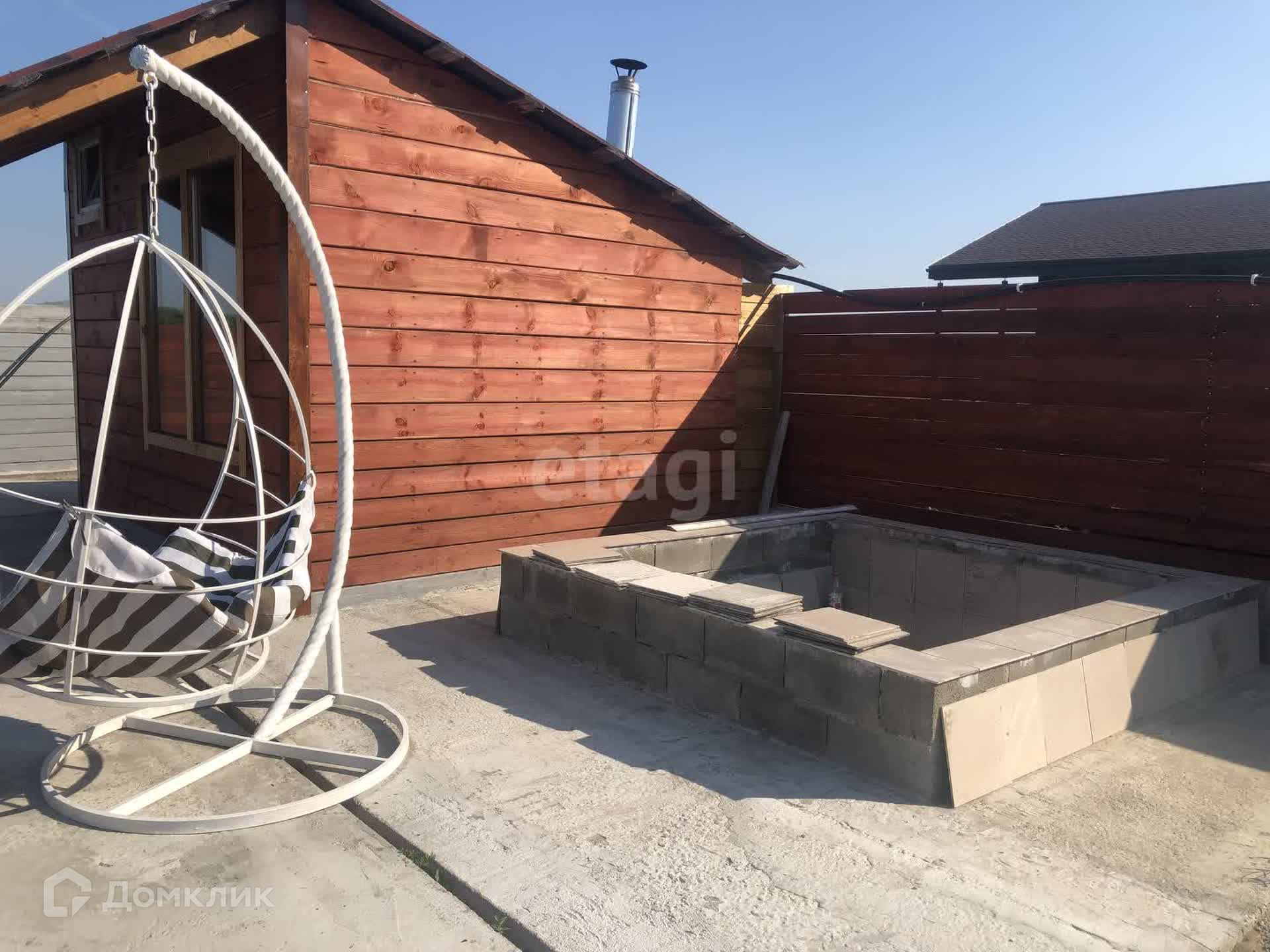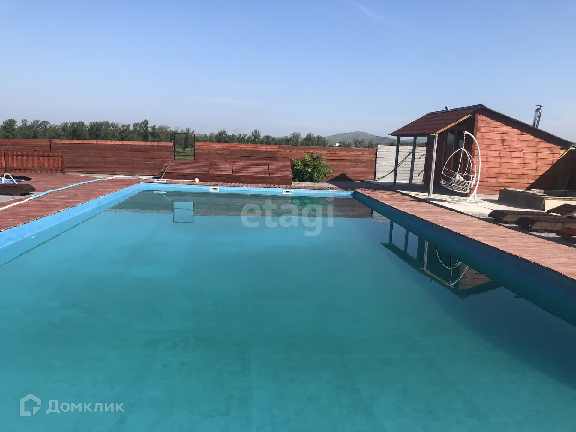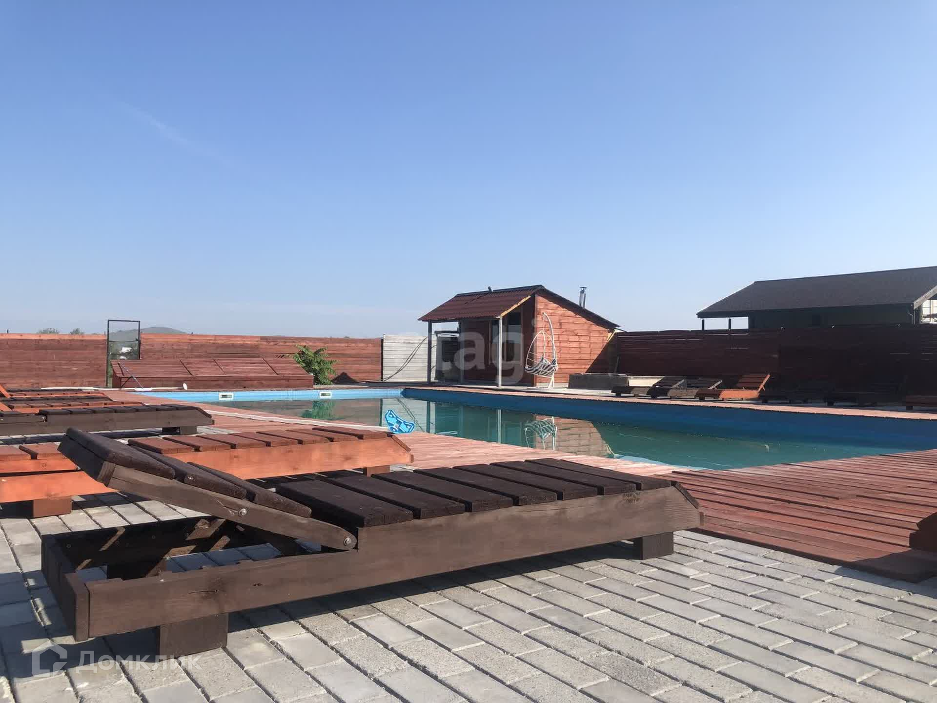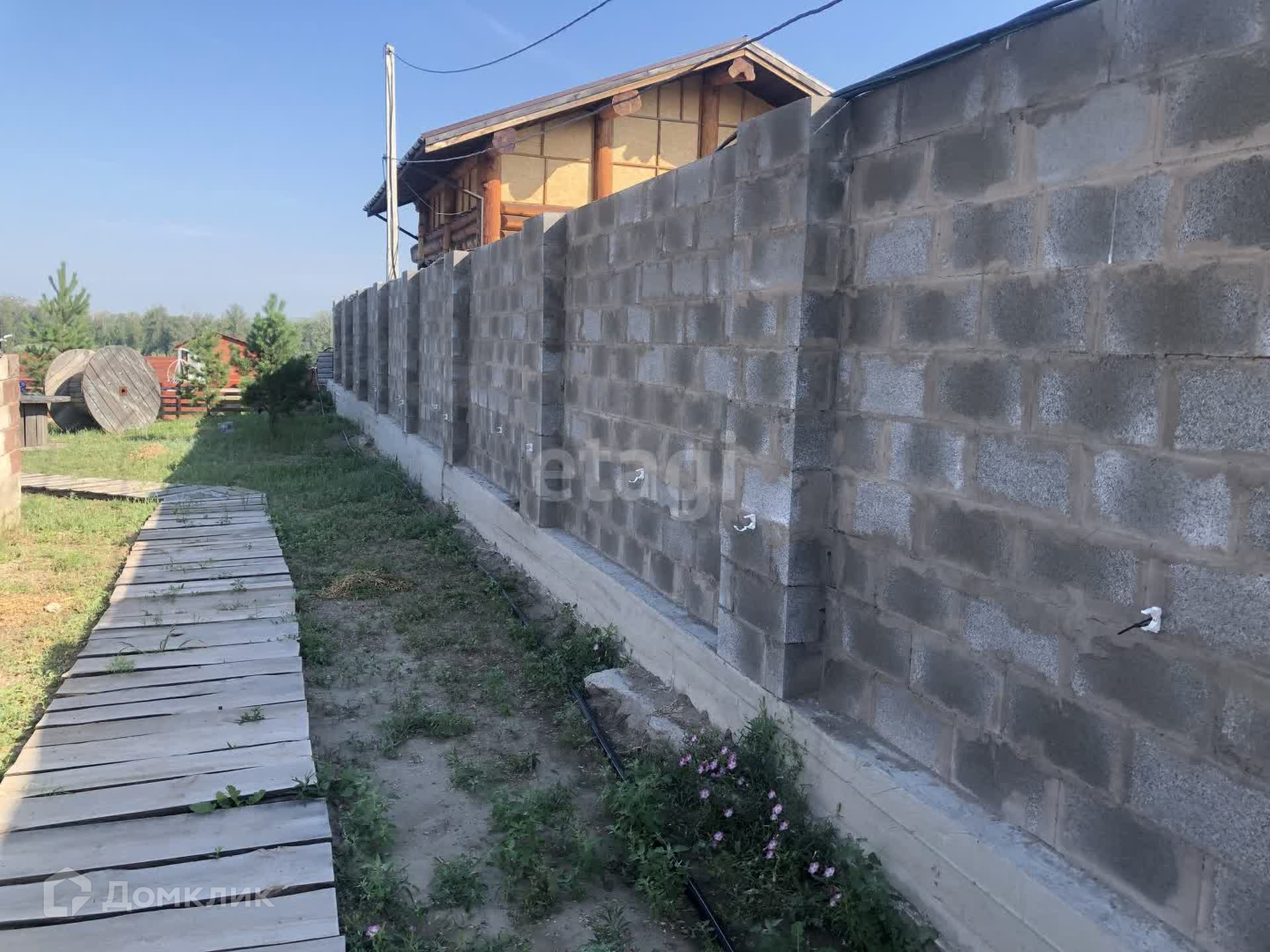 В продаже участок на берегу Енисея с банным комплексом и аквазоной. Первая береговая линия, прекрасный вид на реку Енисей. На территории данного участка есть два бассейна, баня, джакузи, оформлена территория бассейна шезлонгами и террасой. Есть недострой с фундаментом и несколькими рядами возведенного термоблока.