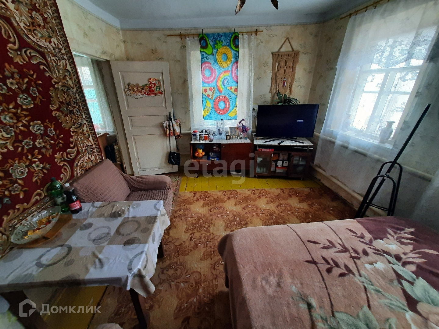 Дом требует ремонта. Пол, оконные рамы, входные и межкомнатные двери - деревянные.
