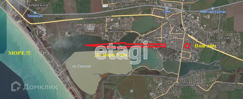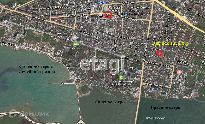 Домовладение расположено в тихом районе, недалеко от центра города. Рядом магазины, больница, детский садик, лечебное озеро в 500 м, до моря 3 км. Остановка городского транспорта в 5 минутах ходьбы, до автовокзала 1.5 км.