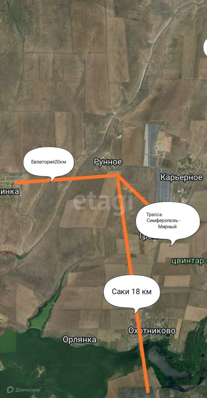 До города Евпатория(20км), Симферополь(55км), Саки(18км). Школа,детский садик находятся в поселке Карьерное (1.5 км) от поселка,школьный автобус регулярно.