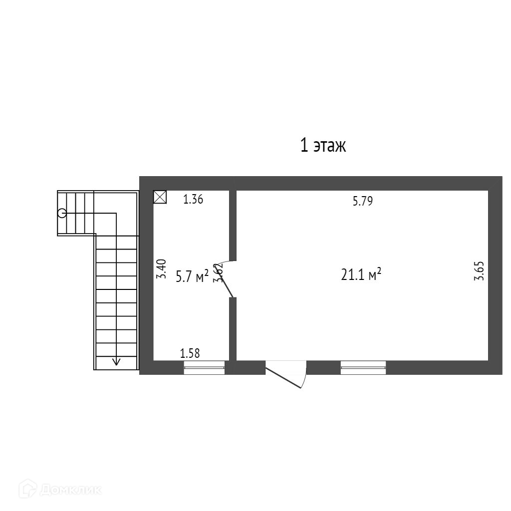 Общая площадь 54 м2