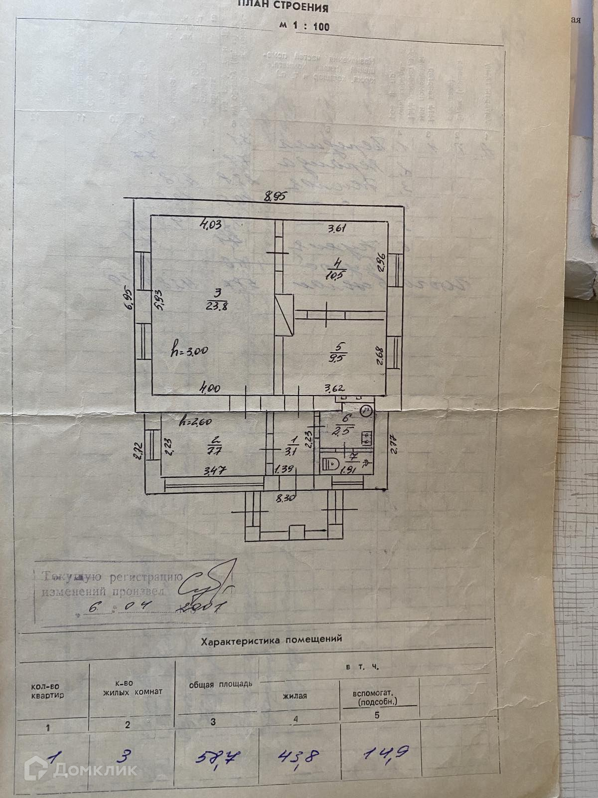 Общая площадь 58.7 м2