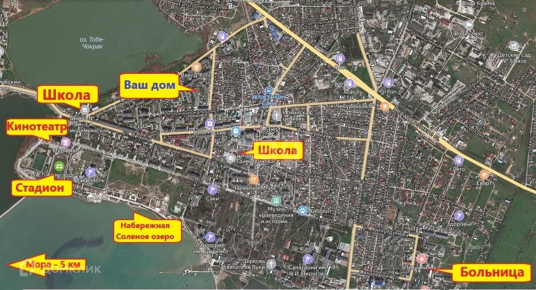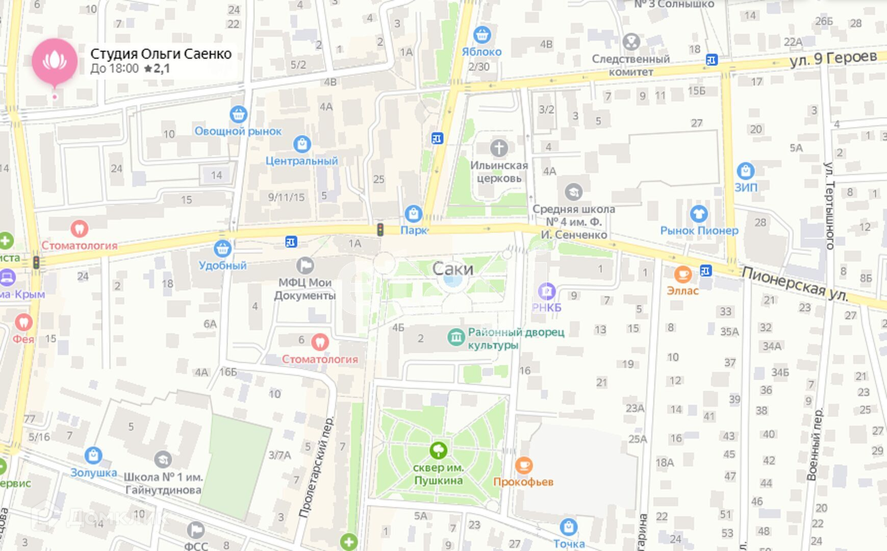 Дом находится в центре города Саки!