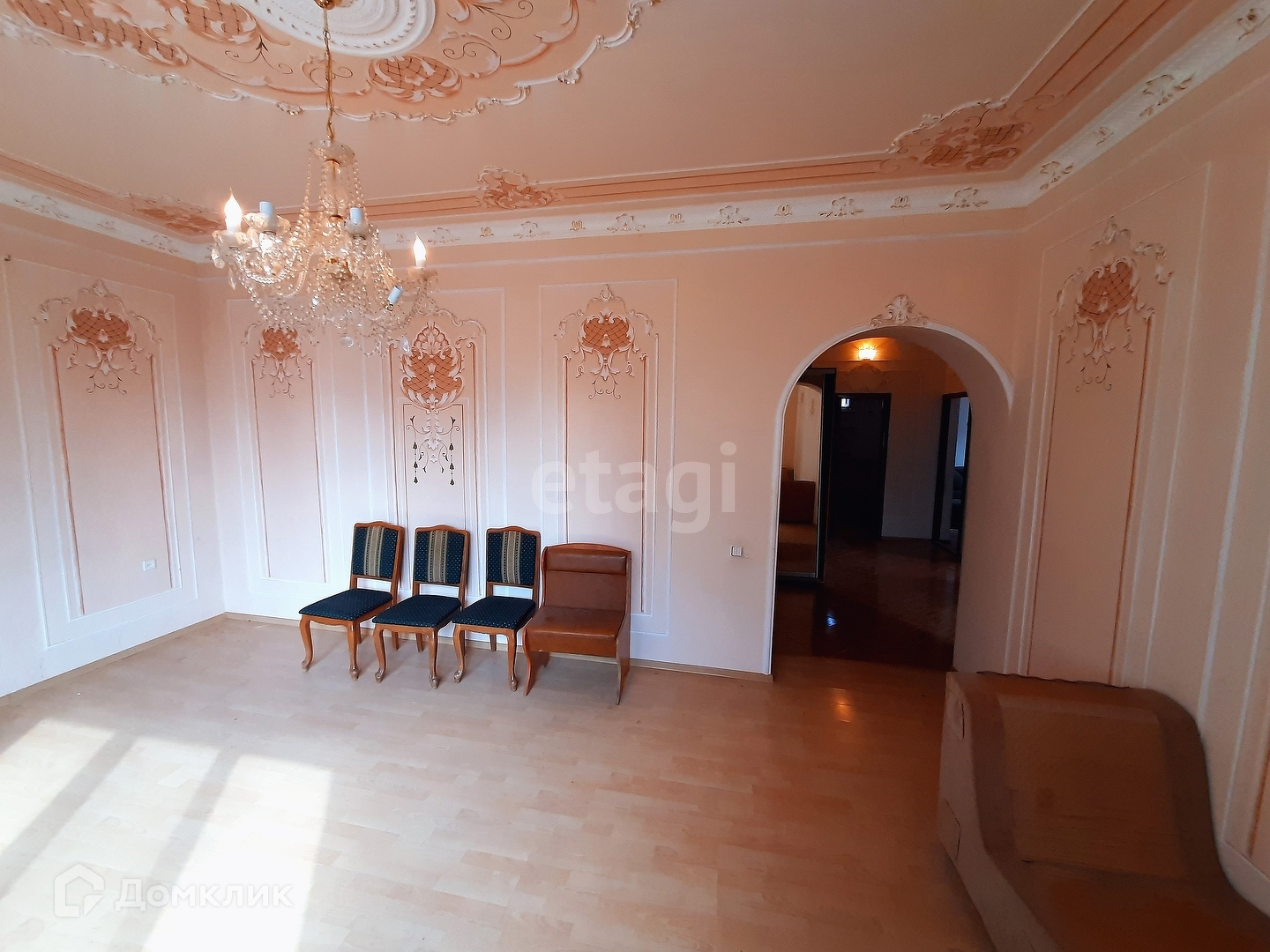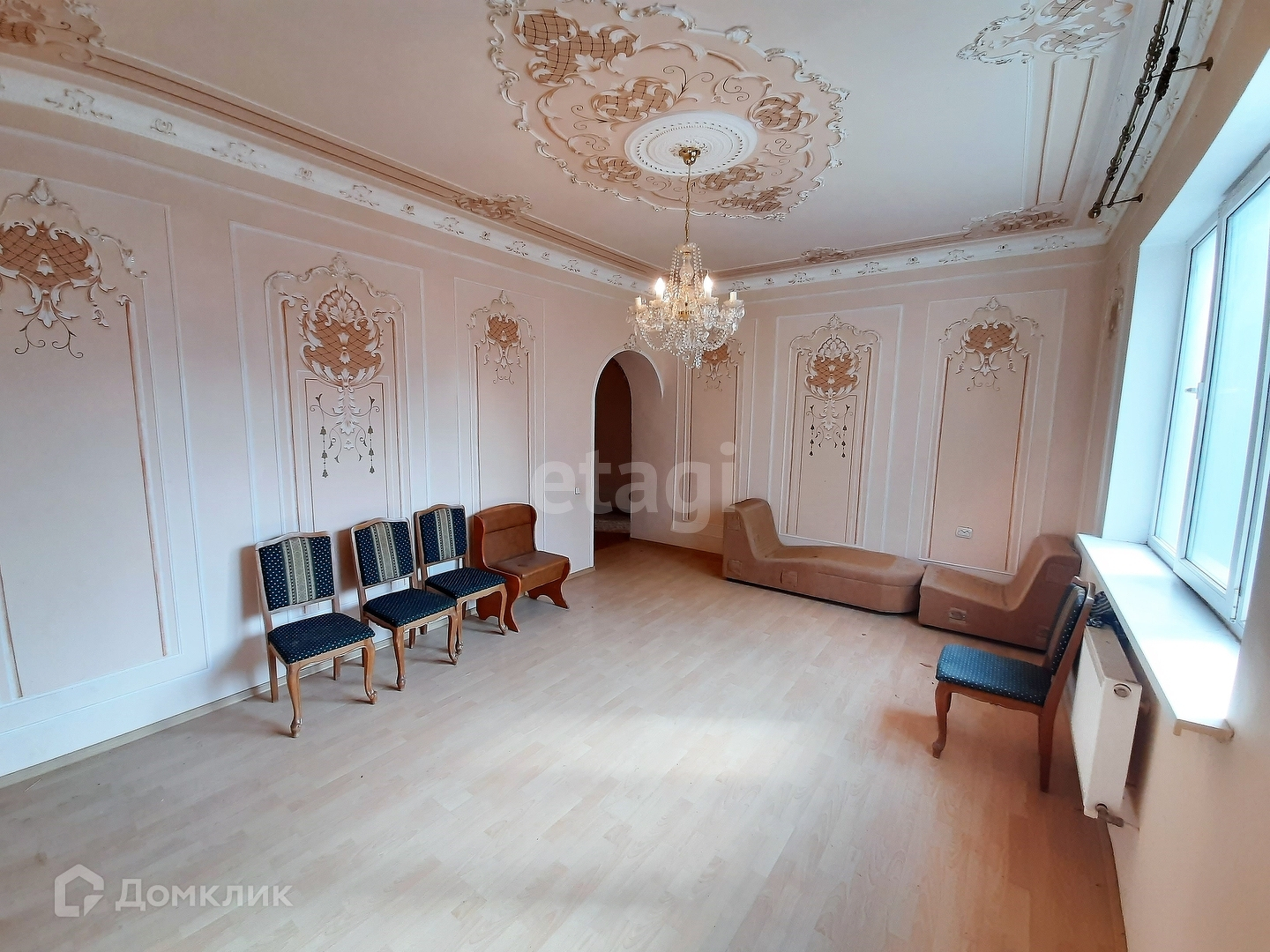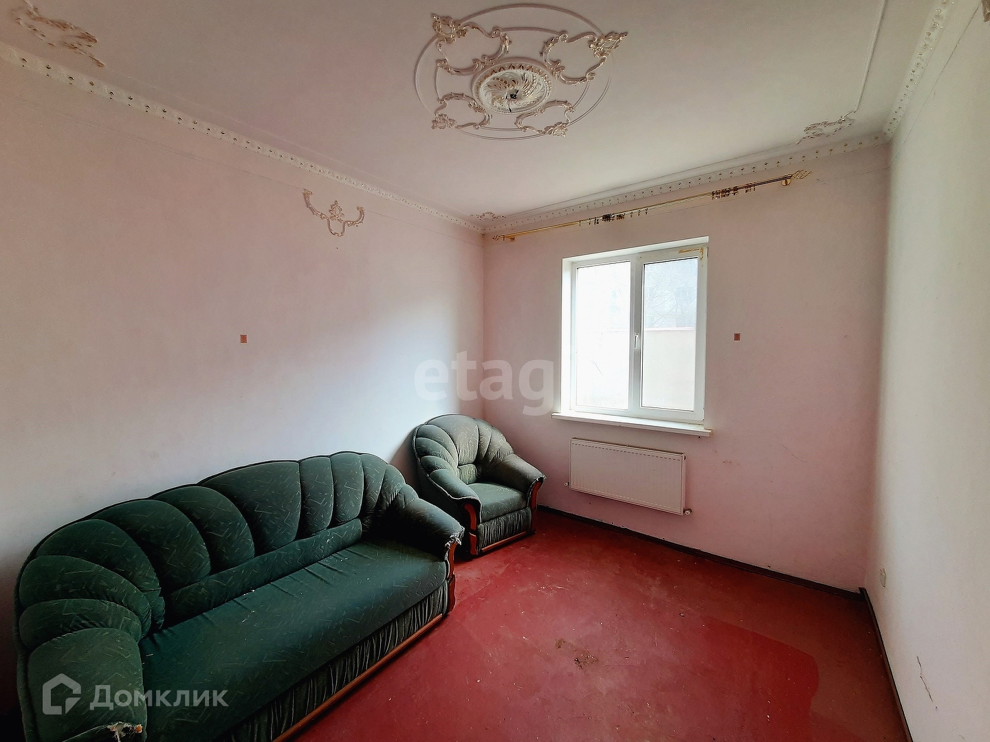 Дом с качественной отделкой: стены - выровнены и покрашены с лепниной, пол - плитка/ламинат/стяжка, окна - металлопластиковые. Требуется легкий освежающий ремонт.