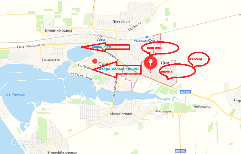 Всё необходимое для комфортной жизни рядом: школа, детский сад, магазины, рынок, церковь. А так же в 10 минутах ходьбы прекрасная набережная, расположенная на берегу лечебного соленого грязевого озера, по которой можно пешком добраться до моря (3 км)