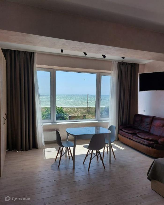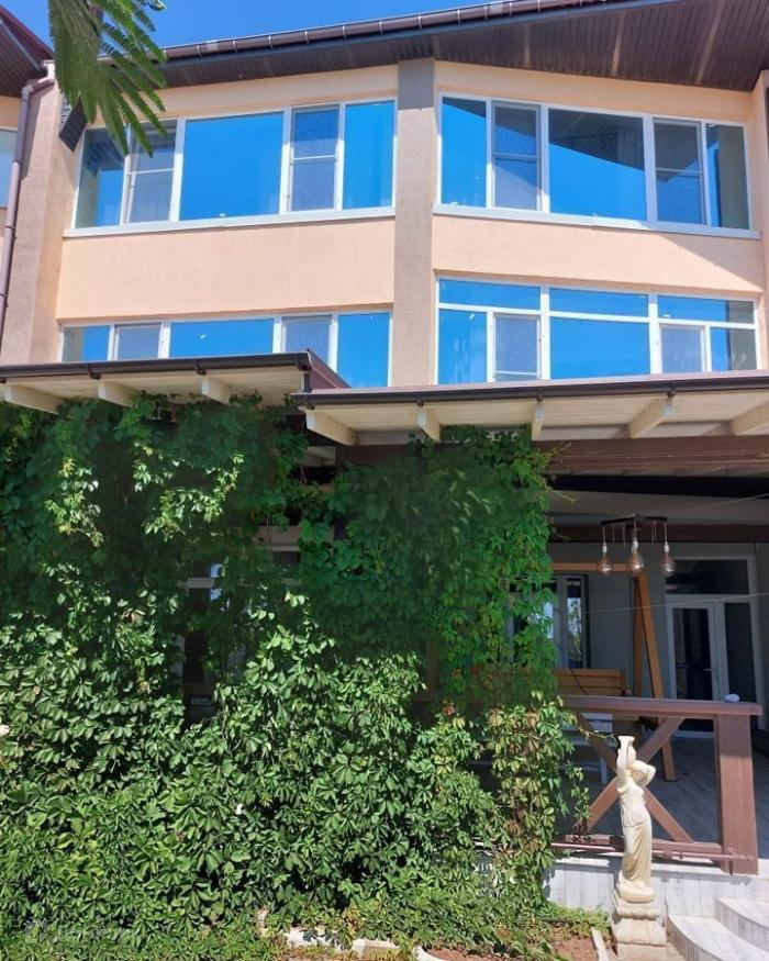 Продаются апартаменты (дом блокированной застройки) у самого уреза пляжа  Чёрного моря! Море реально в 20 метрах! Апартаменты находятся в районе пгт Новофёдоровка. Дом находится в блокированой застройке состоящей из 4-х домовых секций по 3 этажа и по 240 кв.м каждый, имеет отдельный вход и выход к морю и на земельный участок размером 1.9 сотки. Сзади здания огороженый хоздвор со стоянкой на 3 автомобиля. Дом состоит из 3-х этажей:1й этаж - студия - 60м2.,   2й и 3й этажи состоят из четырёх отдельных номеров  с полным набором для полноценной жизни и отдыха.   Панорамные окна, шикарный вид на море и пляж. На первом этаже огромная терраса с камином. Дом сейчас  используется под бизнес - гостевой дом.   Земельный участок благоустроен, есть место под бассейн 3х9м. Земля в аренде на 49лет (до 2063 года), с возможностью выкупа в собственность за 50% от кадастровой. .  Код объекта 397555.