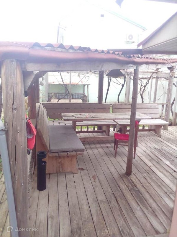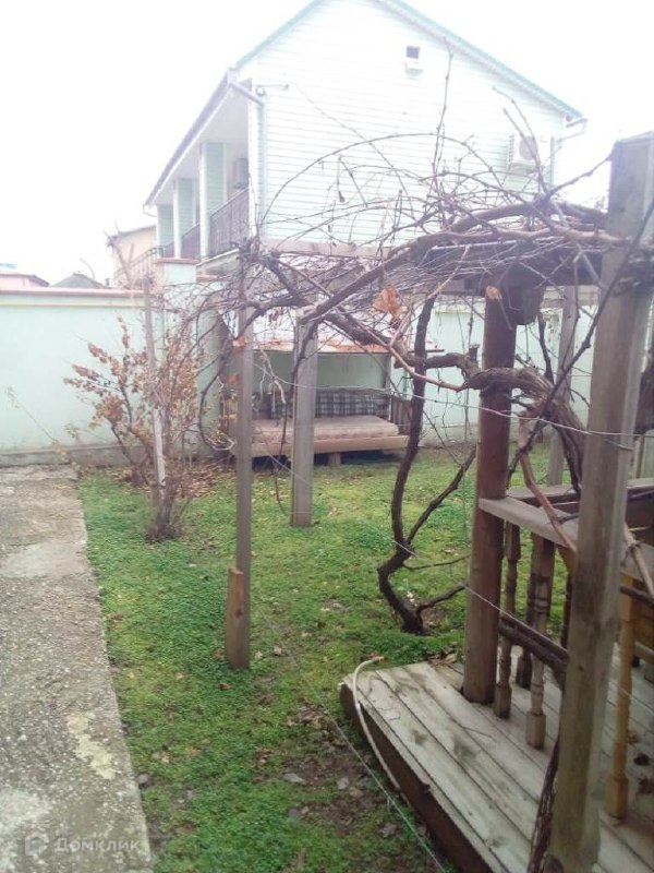 Дом огорожен прочным забором, есть много места во дворе для машин, а также место для отдыха или приема гостей.
