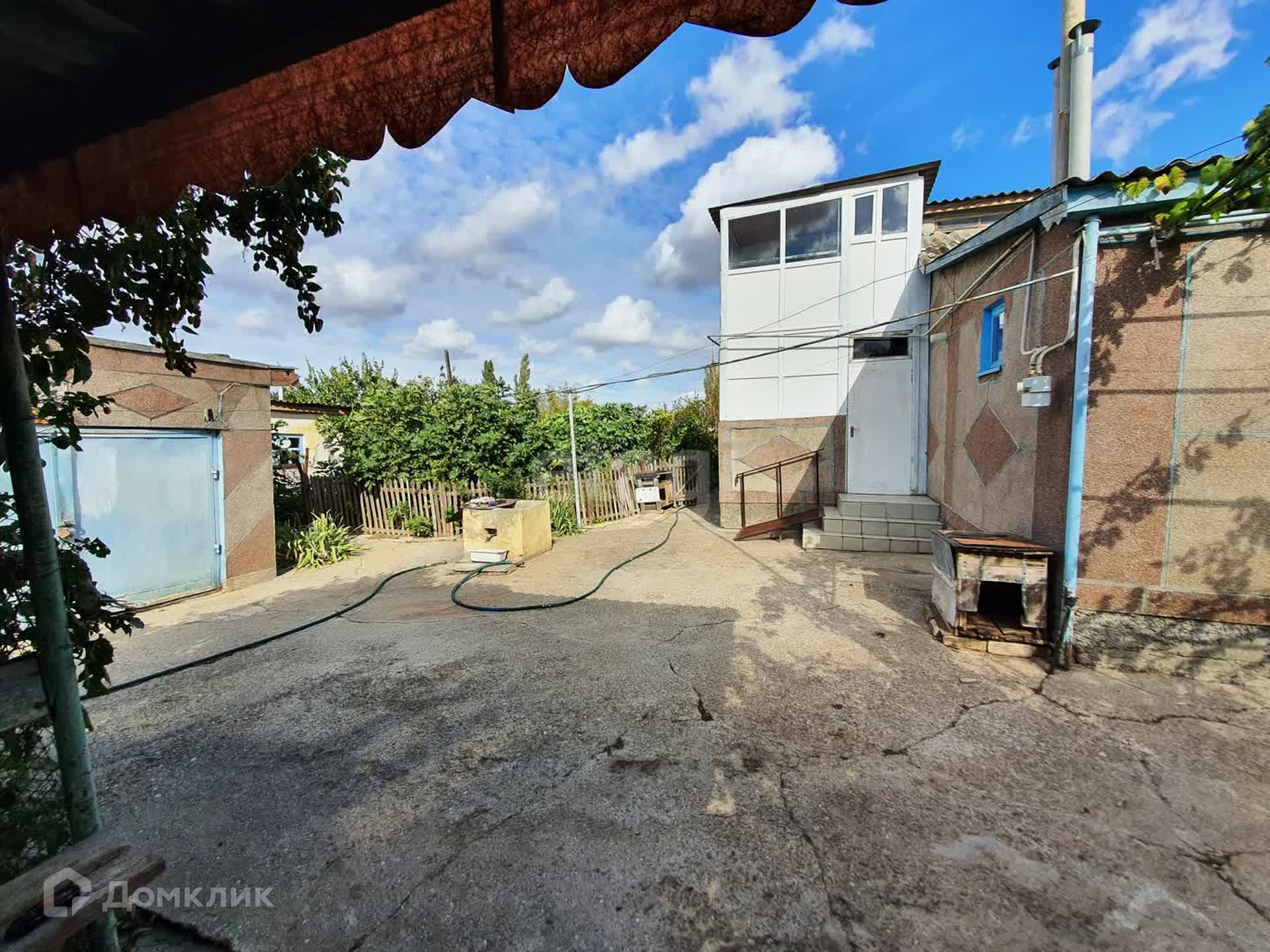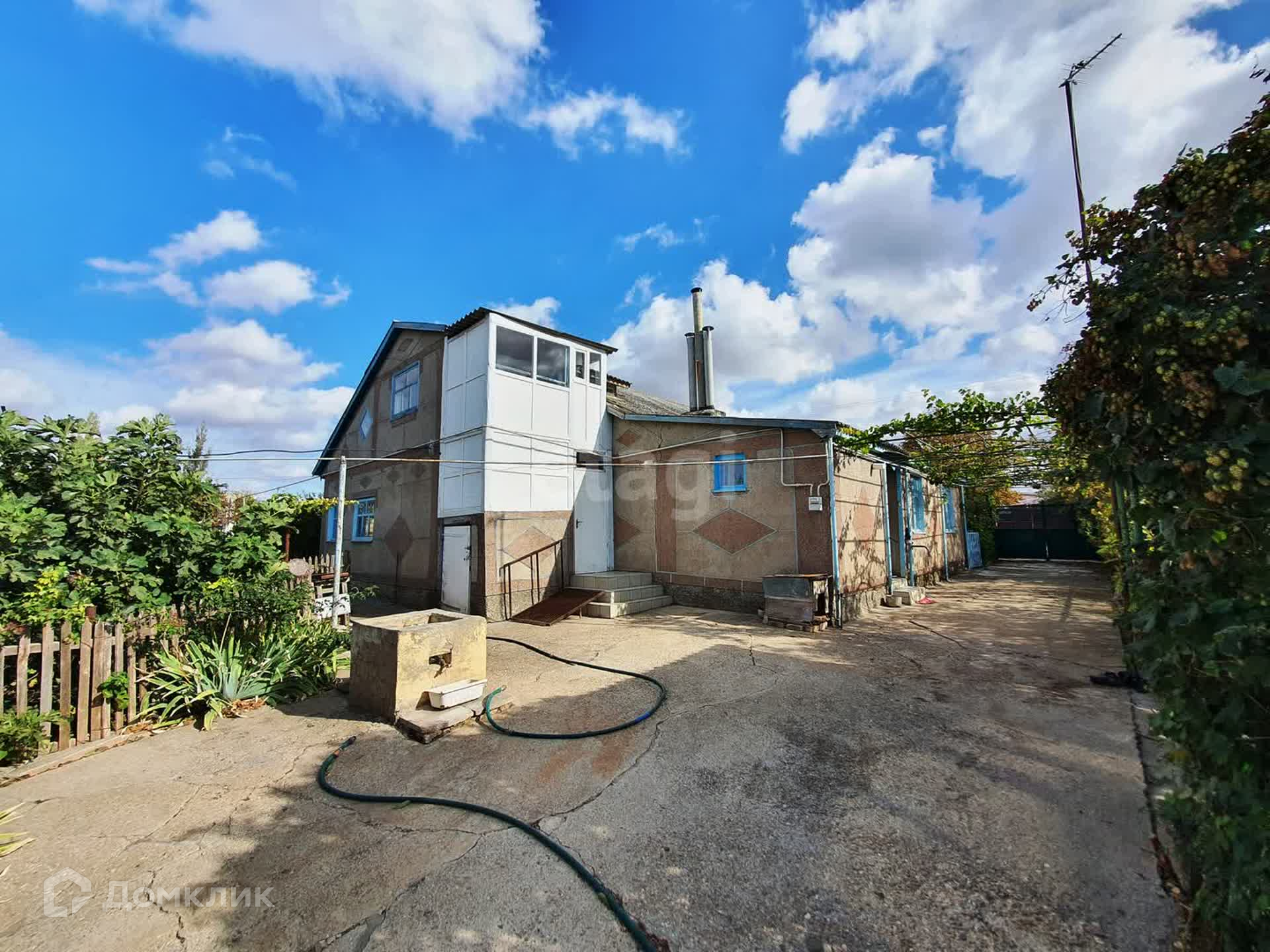 Кроме дома, во дворе также имеется водопроводная колонка. Площадь дома 124, 6 кв м, площади земельных участков 1500 кв.м и 200 кв м. На приусадебном участке высажены фруктовые деревья и виноградник.