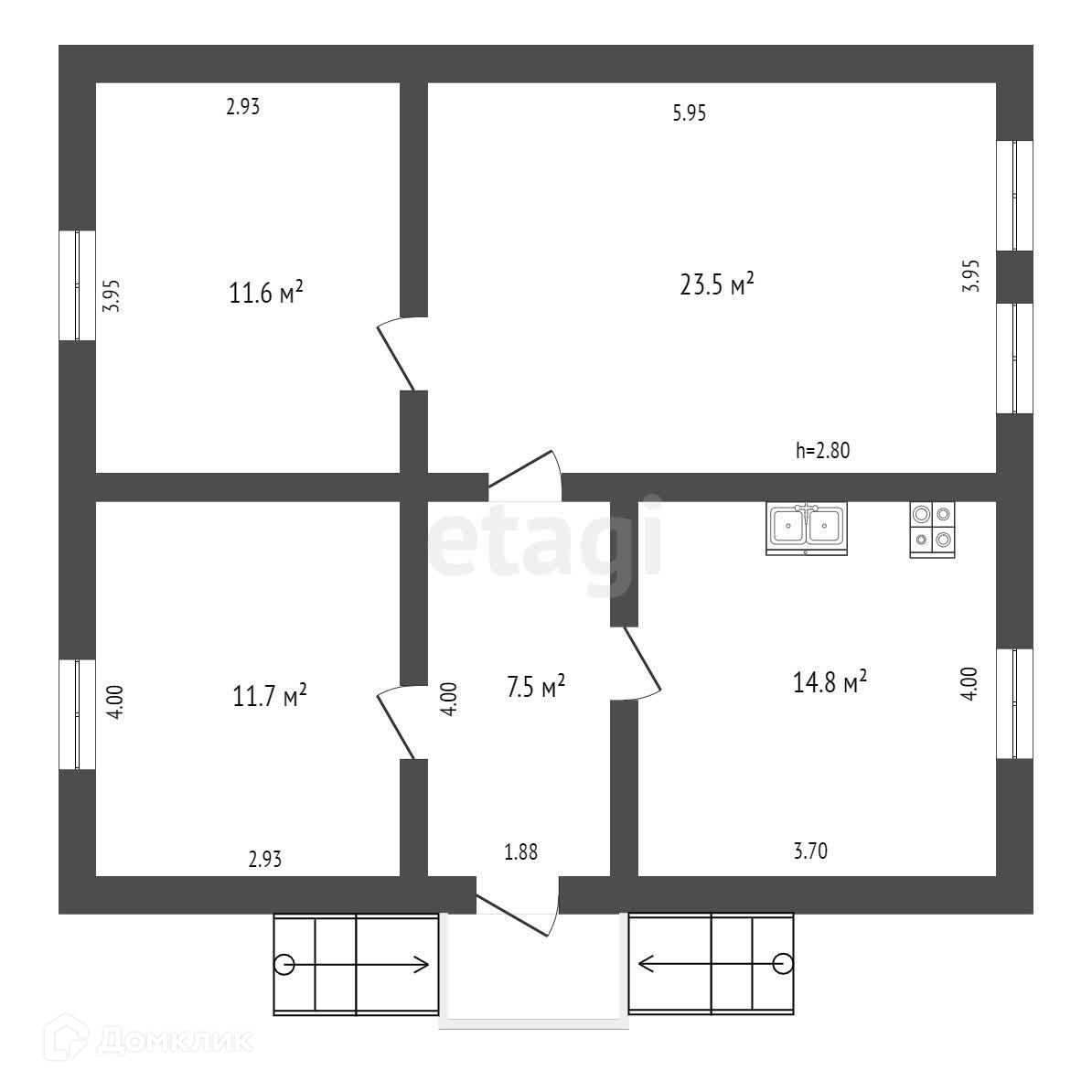 Общая площадь 69.1 м2