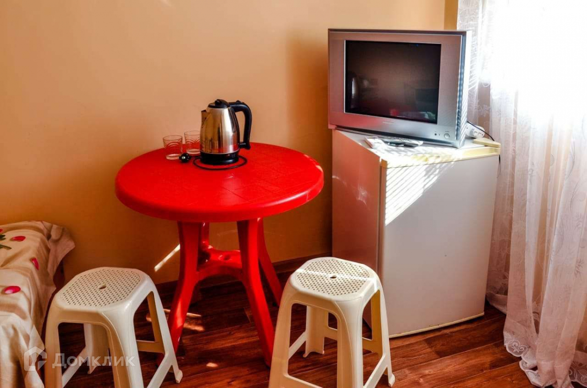 Во всех комнатах стандартный набор (кондиционер, телевизор, холодильник,стол, стулья, шкаф,тумбочка, чайник!!!)