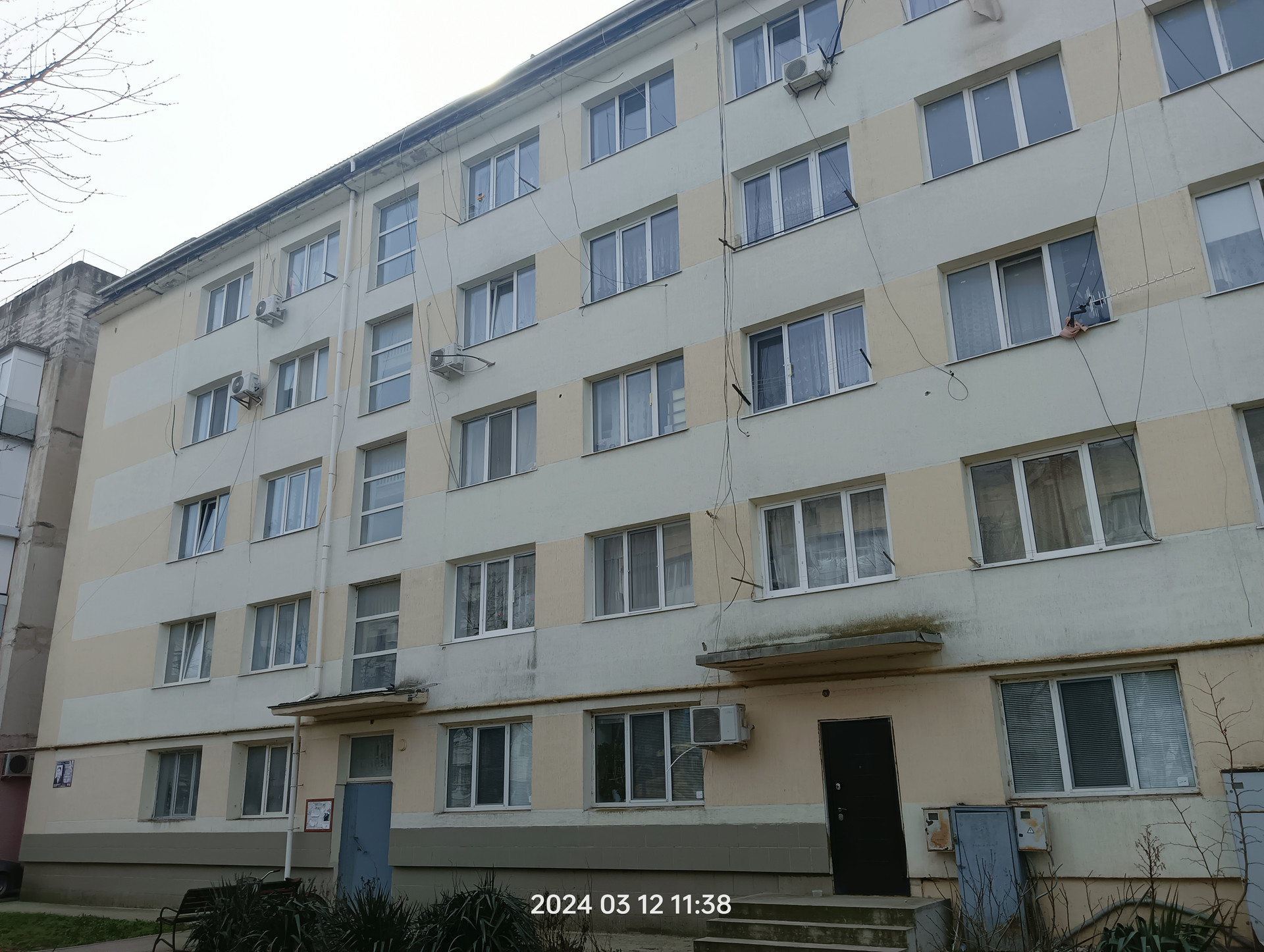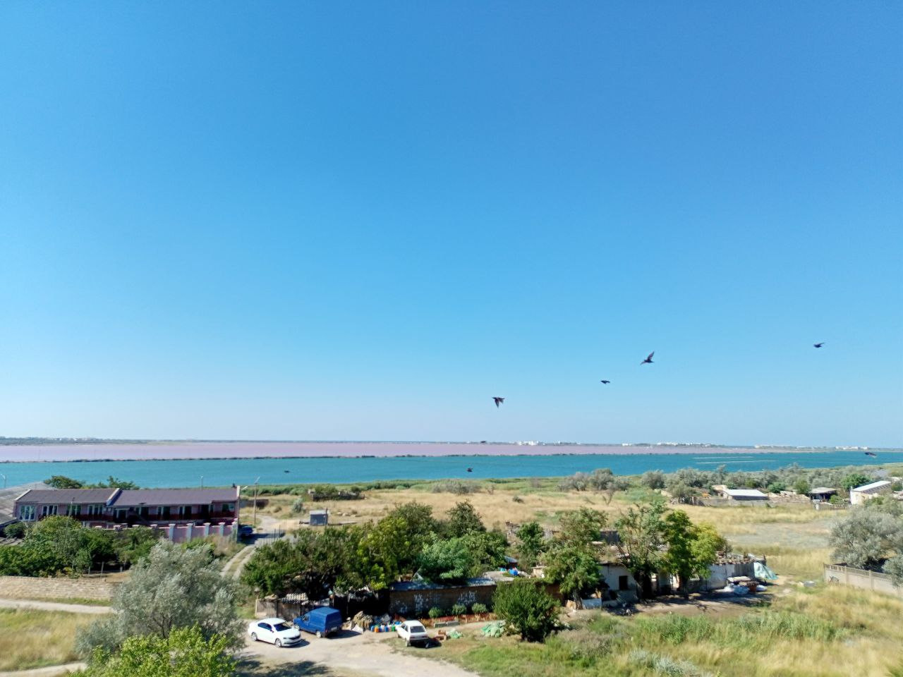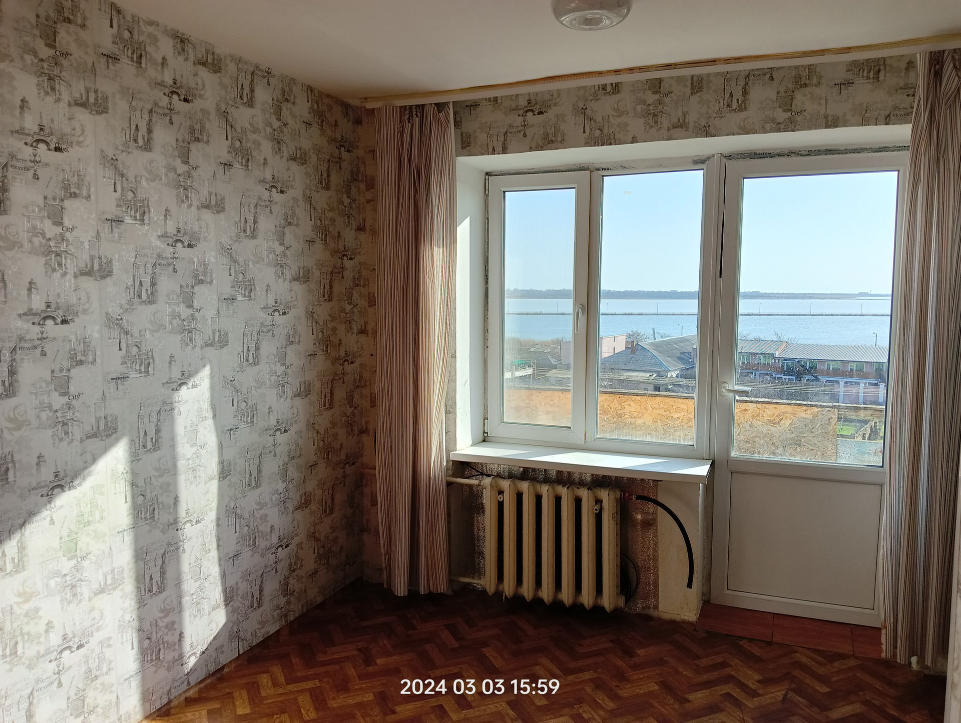 Окна одной комнаты выходят во двор с видом на детскую площадку, а окна второй (с балконом) на Сакские озера и море.