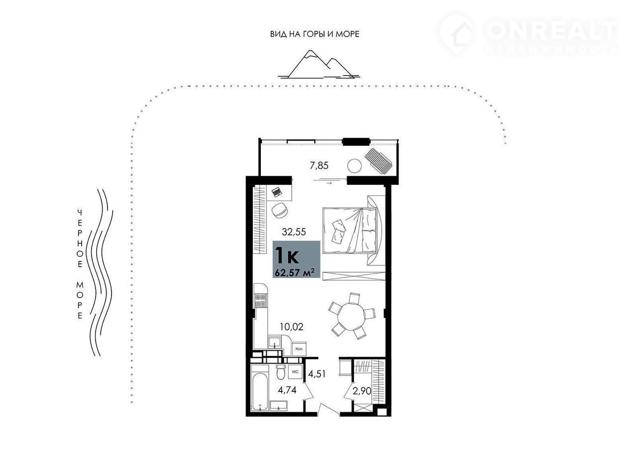 Балкон, лоджия 1 лоджия