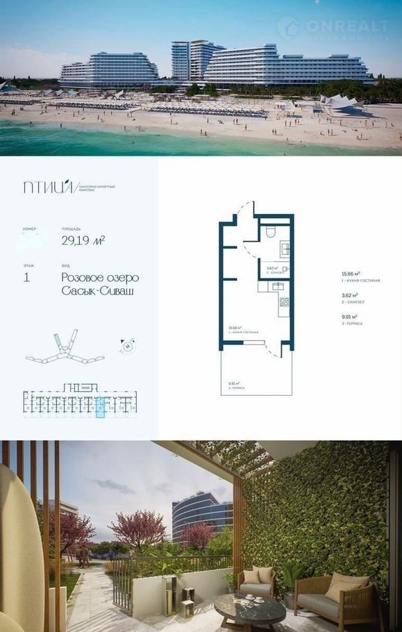 Квартира студия, 29 м2, этаж 1 / 10, на продажу в Саках