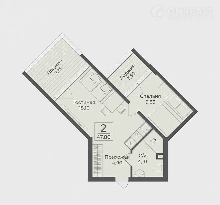 Общая площадь 47.8 м2
