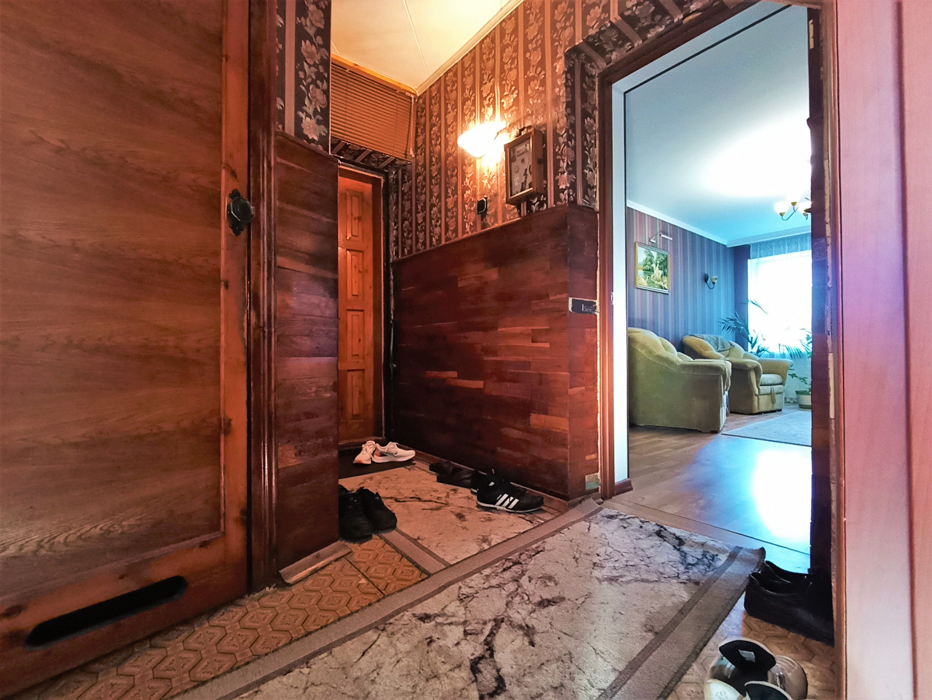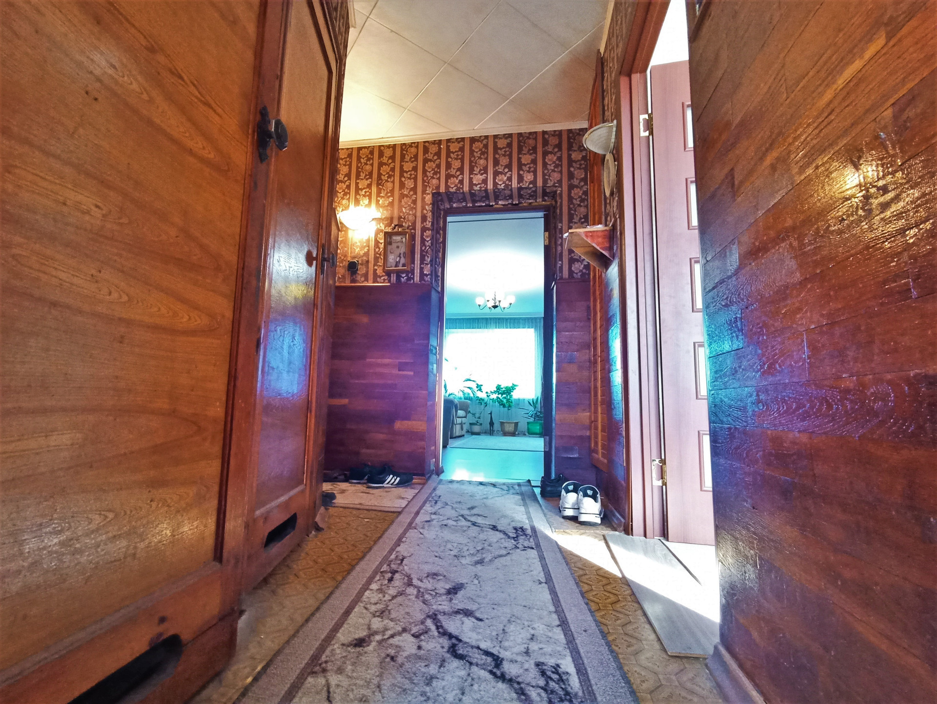 Прихожая отделана деревом, сохраняя свежесть и красоту.