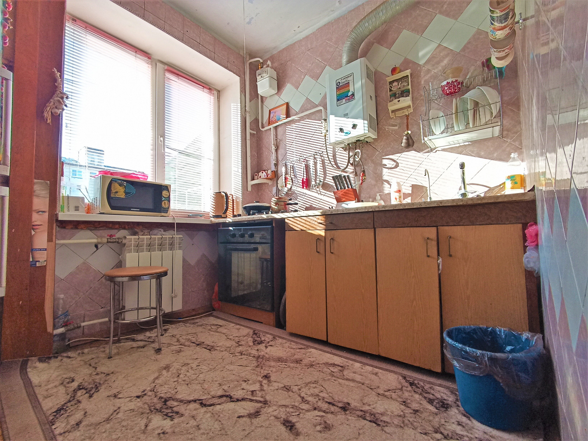 Отопление- магистраль. Для подачи горячей воды установлена газовая колонка. Дополнительно установлен кондиционер.