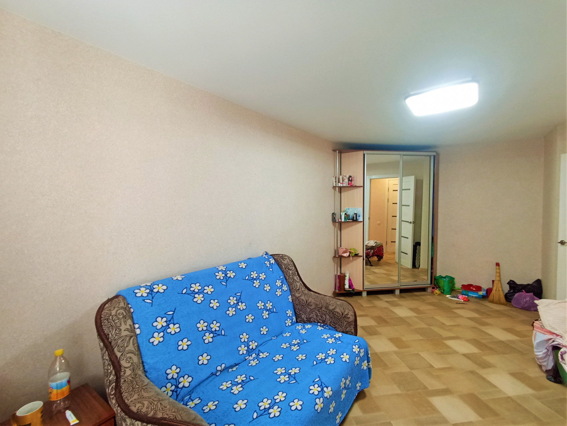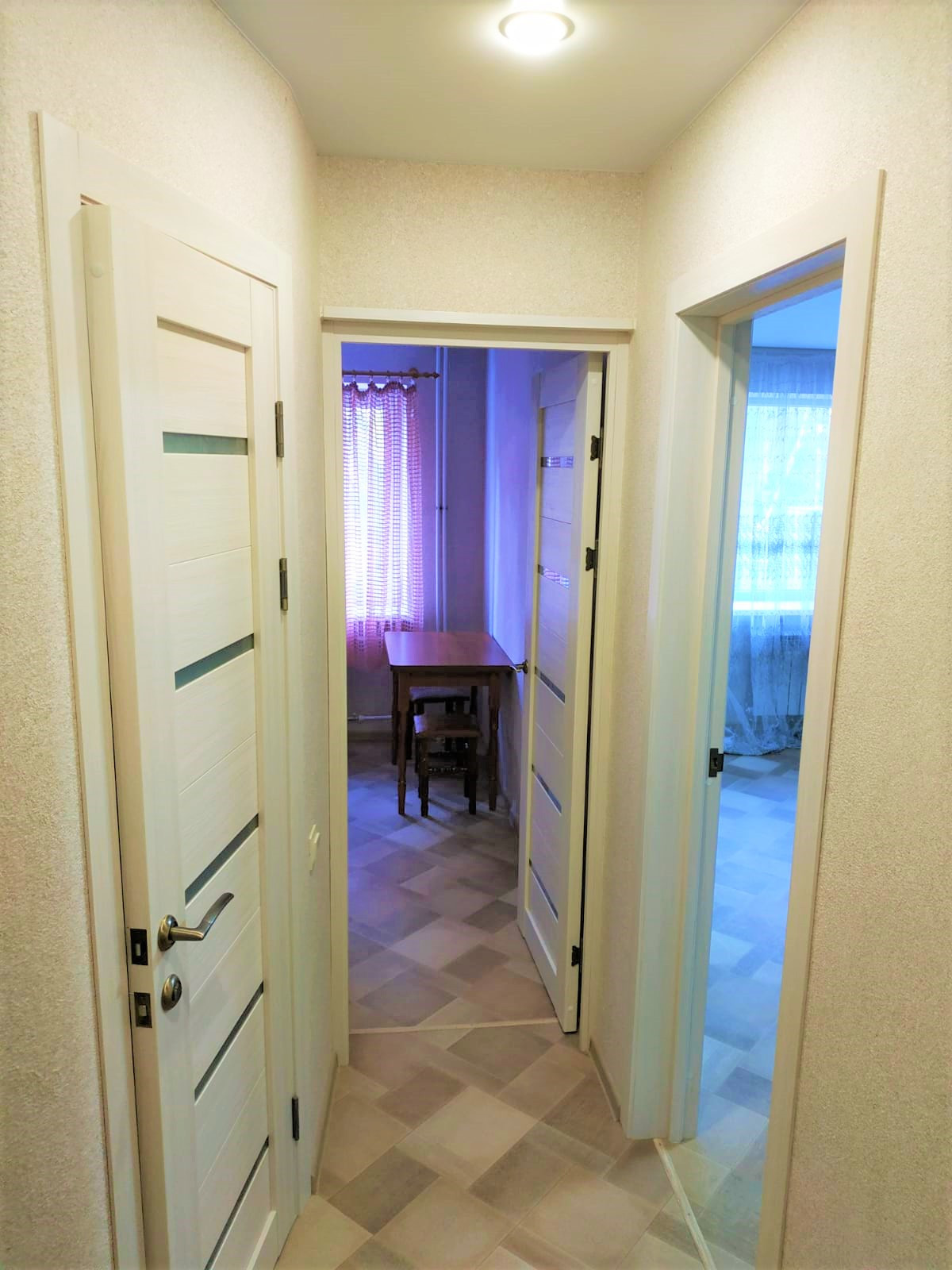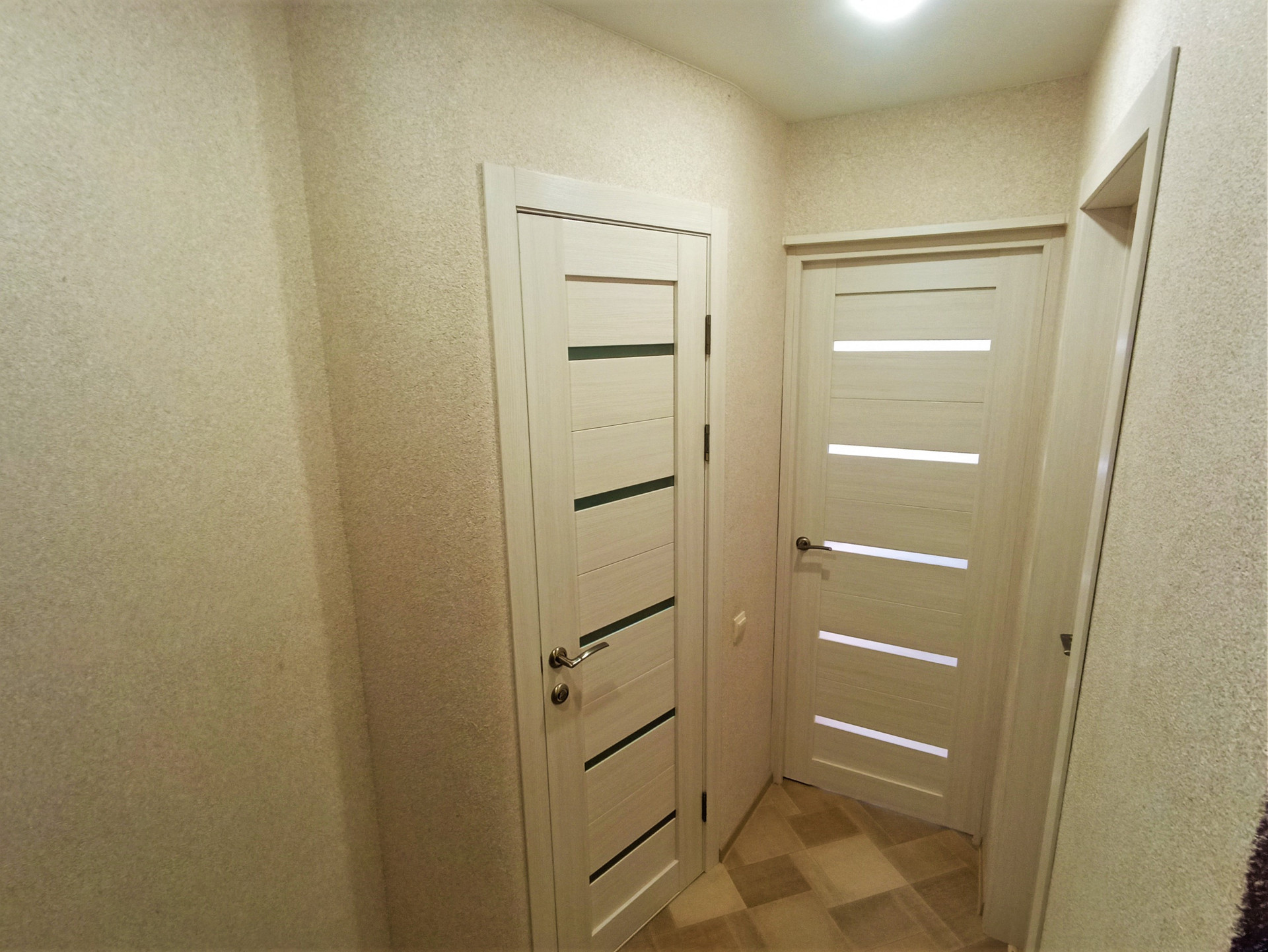 Отделка: Свежий косметический ремонт, матовые белые потолки, с вмонтированными люстрами, стены выровнены и оклеены приятного цвета обоями, на пол положен линолеум, установлены установлены металлопластиковые окна и межкомнатные двери (цвета ясень).