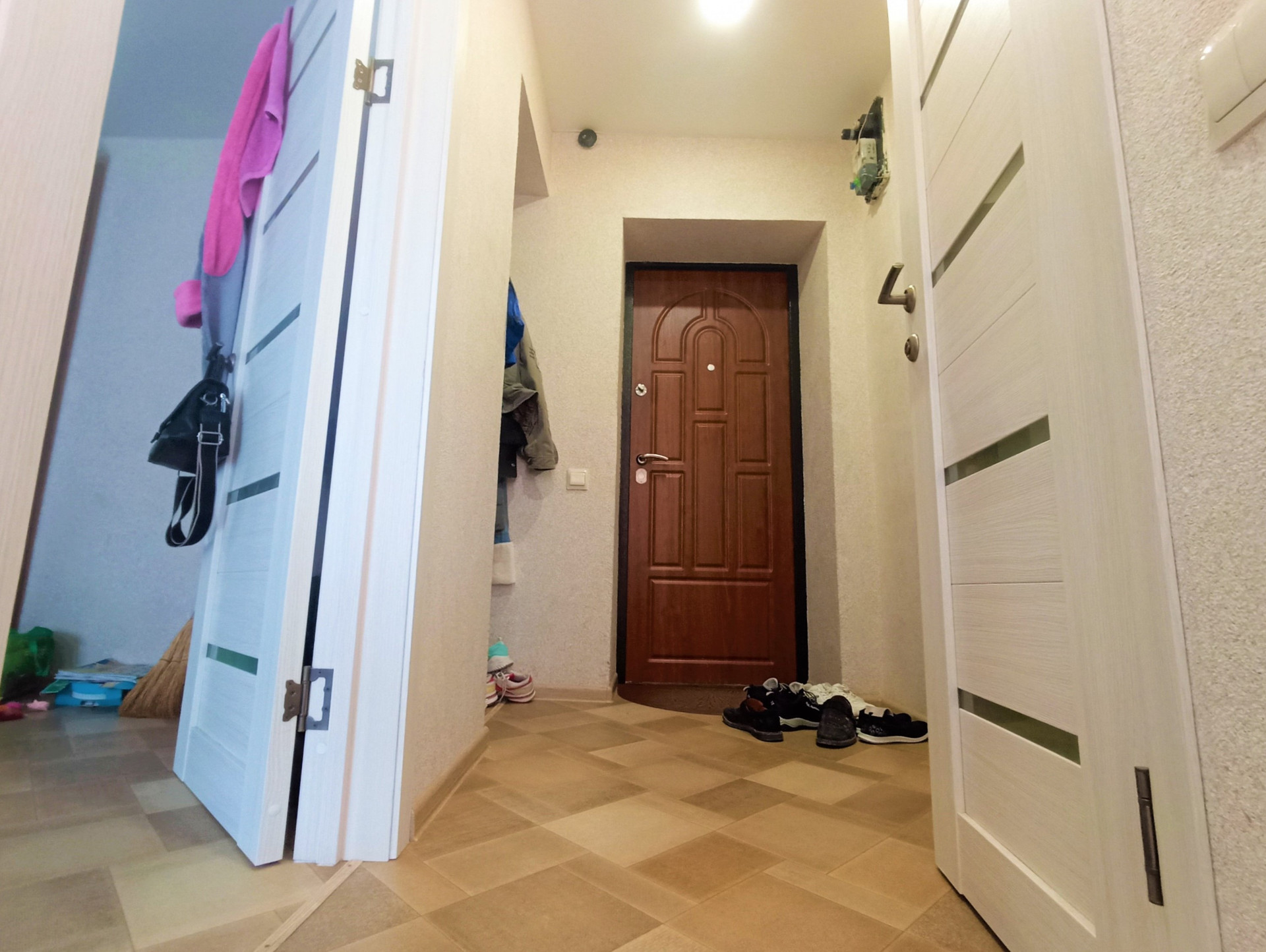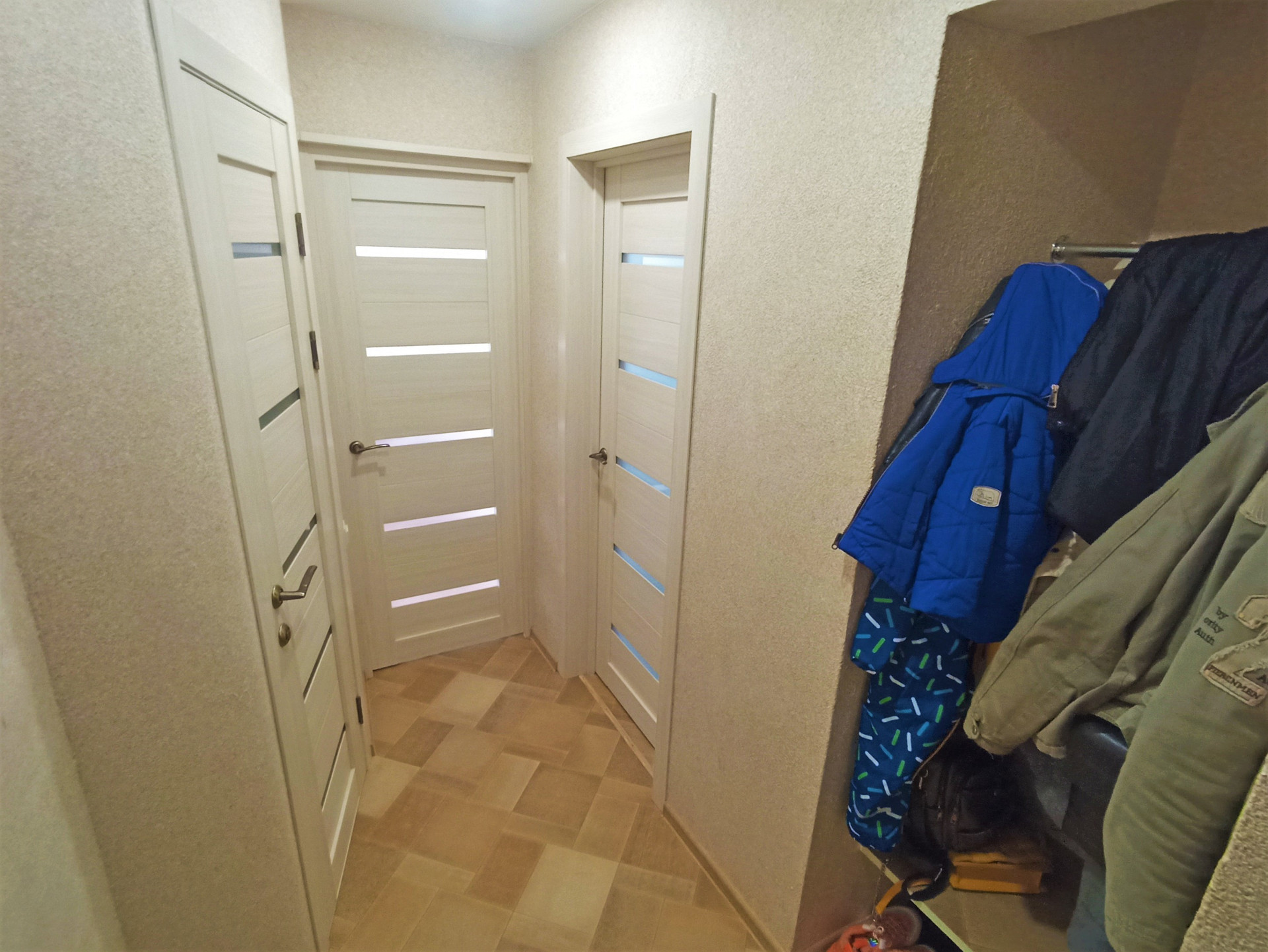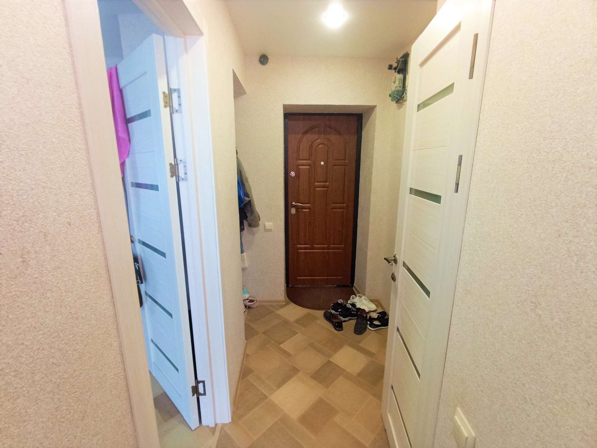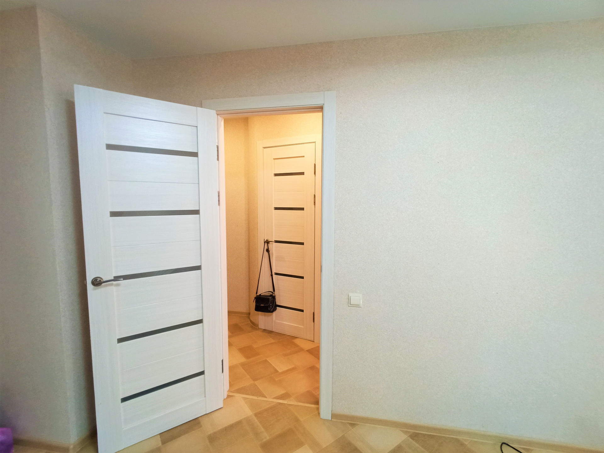 Отделка: Свежий косметический ремонт, матовые белые потолки, с вмонтированными люстрами, стены выровнены и оклеены приятного цвета обоями, на пол положен линолеум, установлены установлены металлопластиковые окна и межкомнатные двери (цвета ясень).