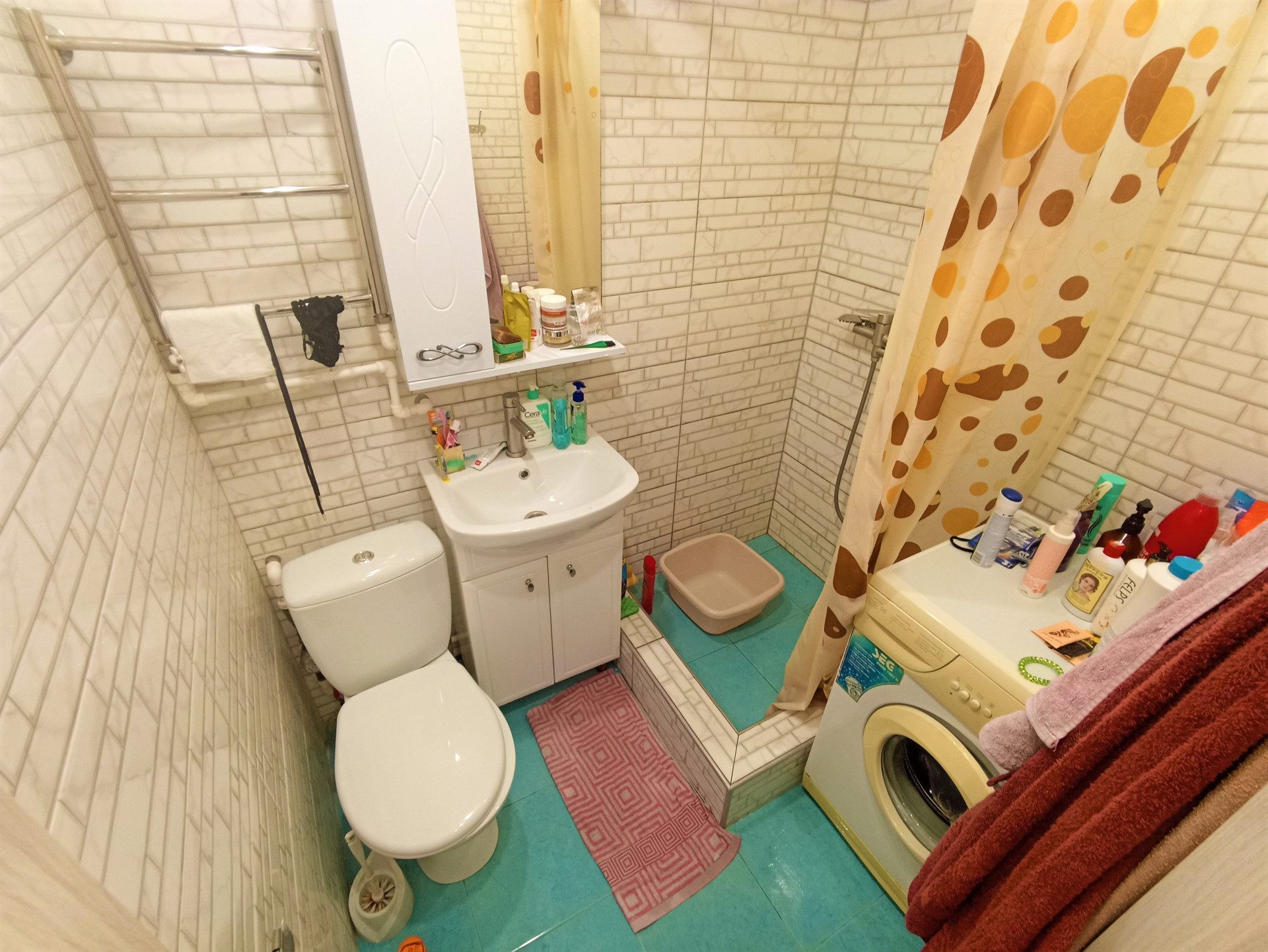 Совмещённый санузел облицован светлым кафелем. Сантехника поменяна. Все коммуникации обновлены.