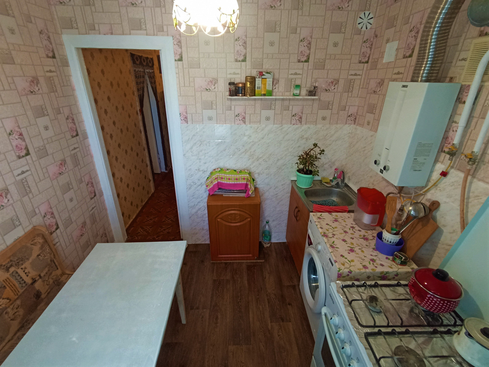 Дополнительно в квартире остаётся холодильник (в прихожей), плазменный телевизор и кондиционер (в зале), газовая плита, стиральная машина (на кухне).