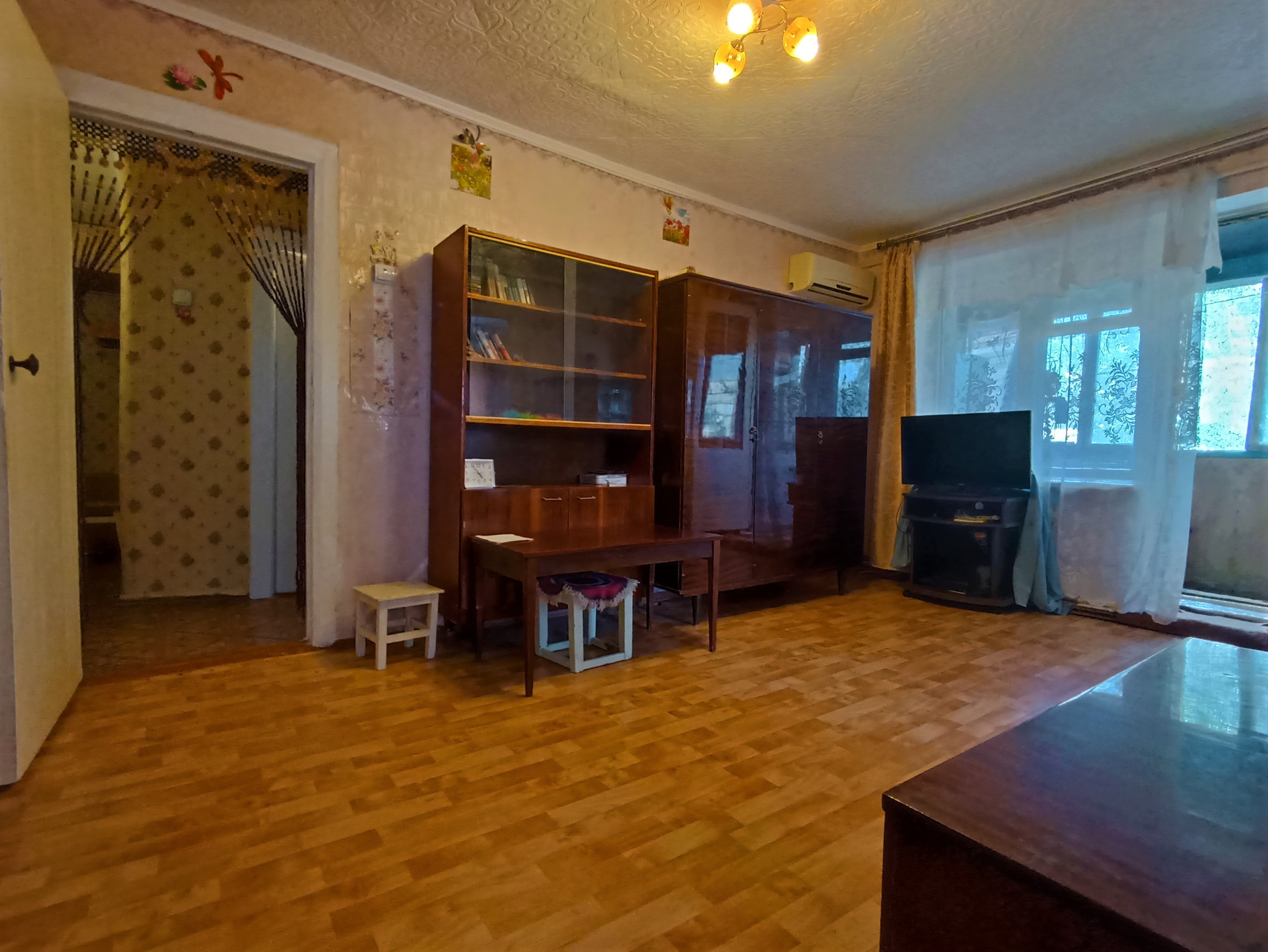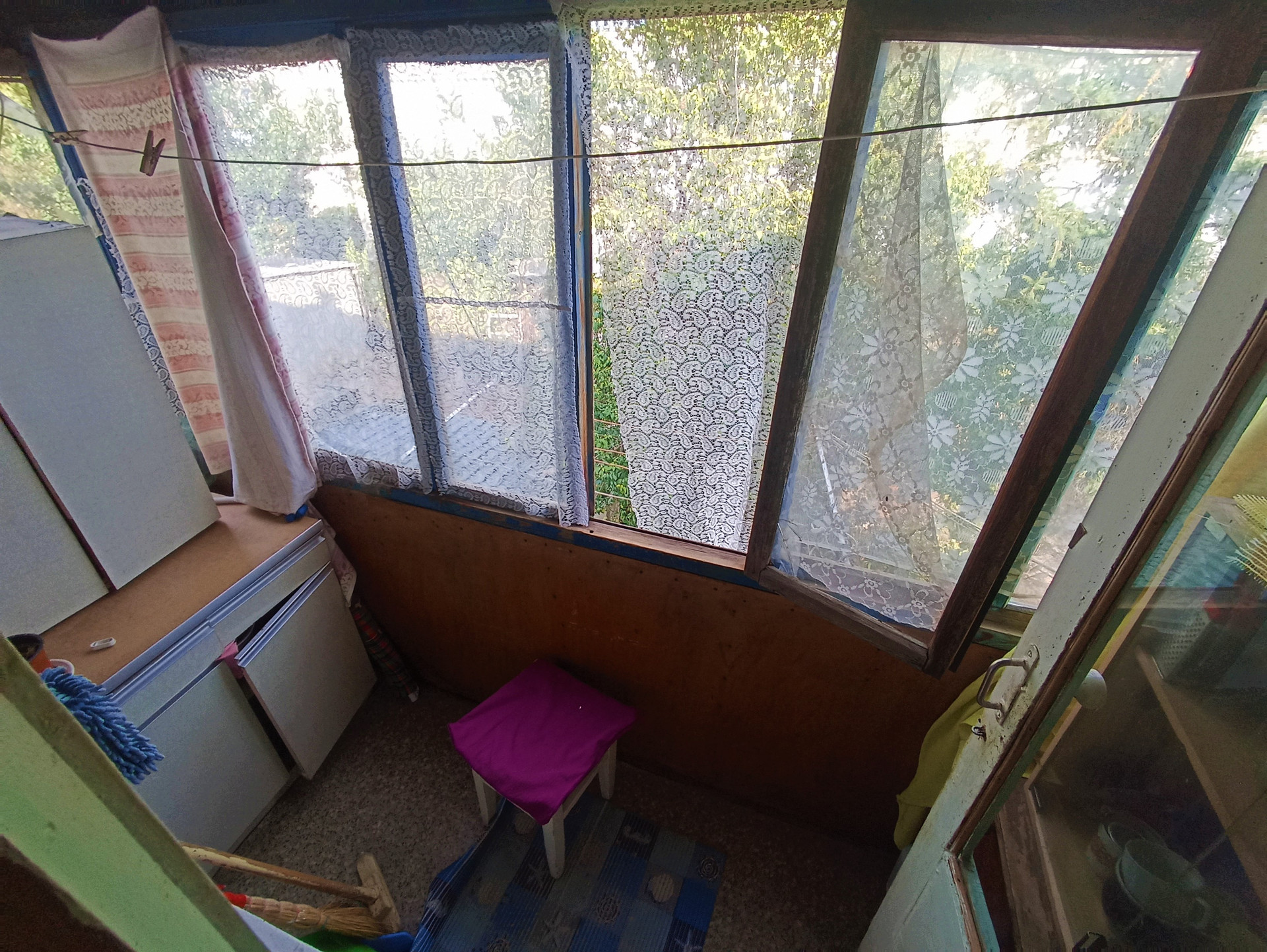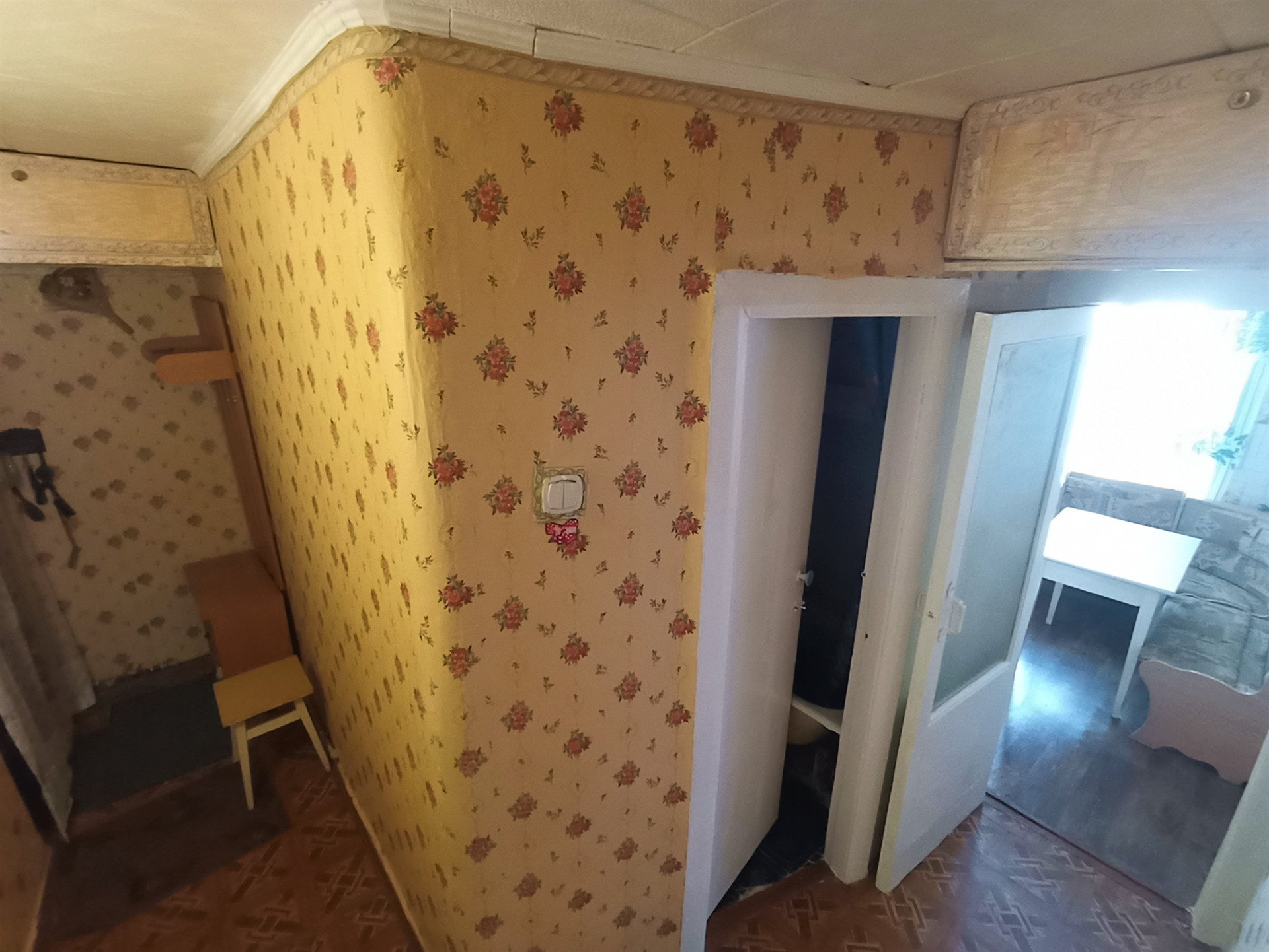 Отделка: Частичный косметический ремонт, потолочные панели, обои, линолеум, окна - частично металлопластиковые и стекло в деревянной раме, межкомнатные деревянные двери.
