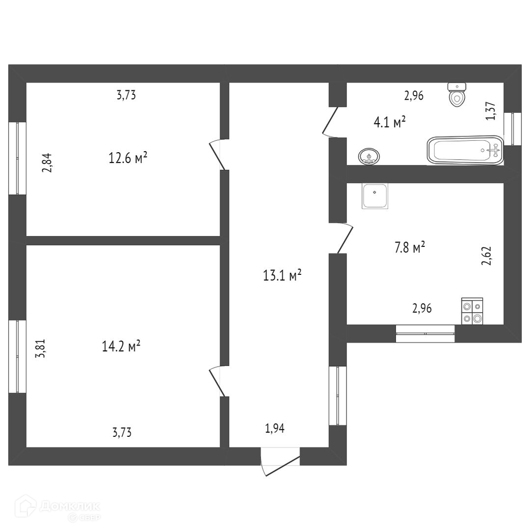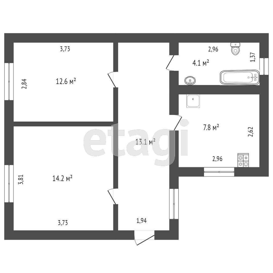 Общая площадь 50.2 м2